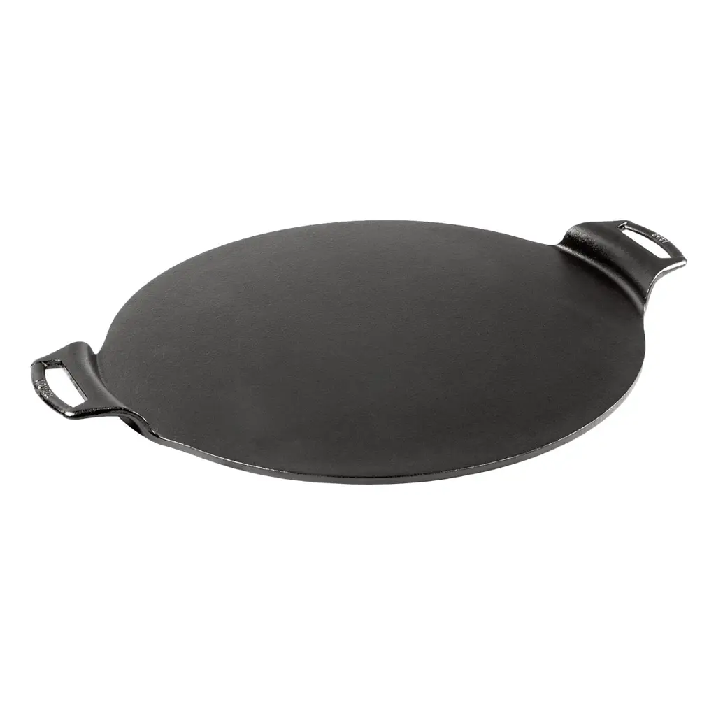 Płyta żeliwna marki Lodge przeznaczona jest do pieczenia pizzy, a także bułek, ciast i wiele innych. Można jej używać w piekarniku, na otwartym ogniu lub na girllu. Przygotowana na niej pizza jest chrupiąca. Konstrukcja płyty nie posiada krawędzi, dzięki czemu można wykorzystać całą jej powierzchnię. Jej średnica wynosi 38 cm. Solidne wykonanie gwarantuje wieloletnie użytkowanie, płyta nie wygina się, ani nie wypacza pod wpływem wysokich temperatur. Żeliwo równomiernie się nagrzewa i długo utrzymuje temperaturę, przez co jest energooszczędna i przyjazna dla środowiska. Świetnie nadaje się do serwowania bezpośrednio na stół uwaga: rączki nagrzewają się. Płytę należy myć ręcznie, a po umyciu wycierać do sucha i nacierać niewielką ilością tłuszczu.