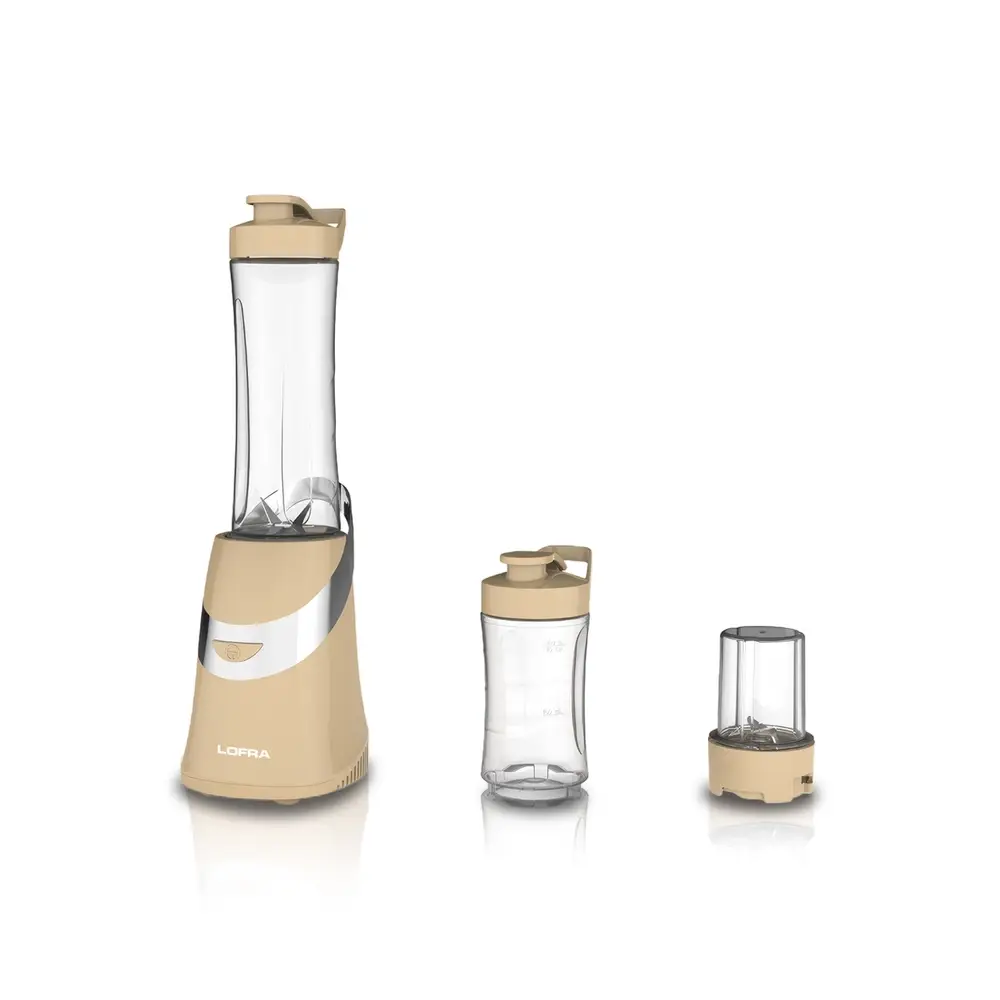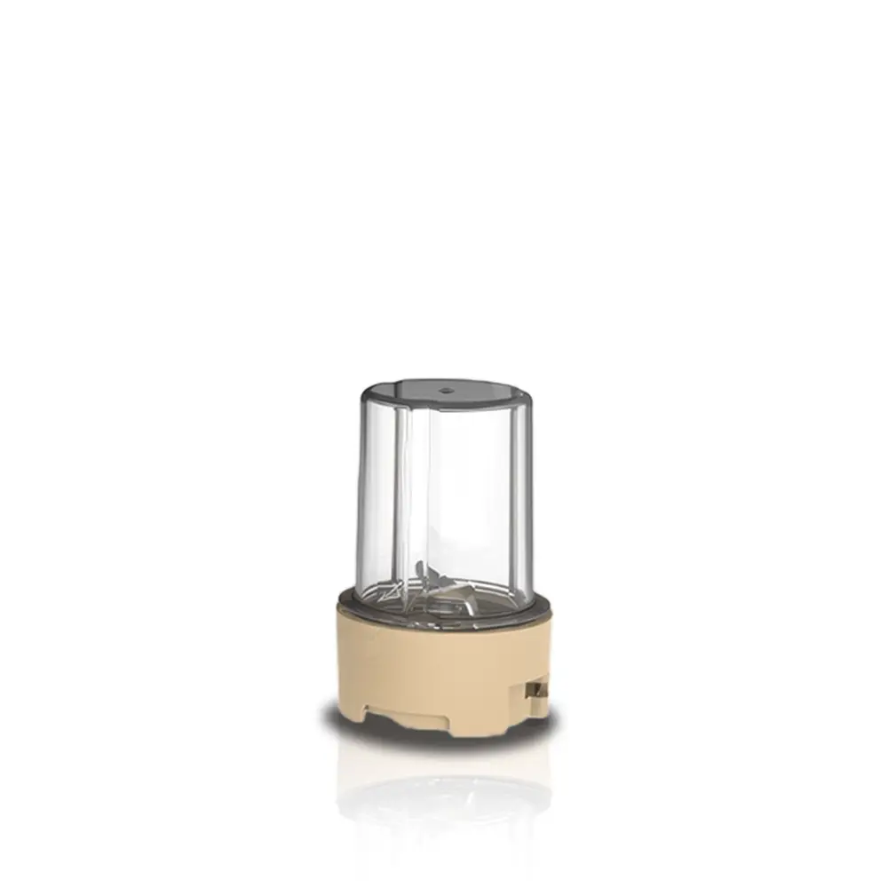 W zestawie znajdują się dwie praktyczne butelki o pojemności 600 ml i 300 ml, które umożliwiają przygotowanie porcji dopasowanej do potrzeb – zarówno na szybkie śniadanie, jak i mniejszą przekąskę w ciągu dnia. Antypoślizgowe nóżki zapewniają stabilność podczas pracy, a przewód o długości 100 cm ułatwia wygodne ustawienie blendera na blacie. Dodatkowym elementem zestawu jest młynek (Grinder), który poszerza możliwości urządzenia i pozwala mielić wybrane składniki.