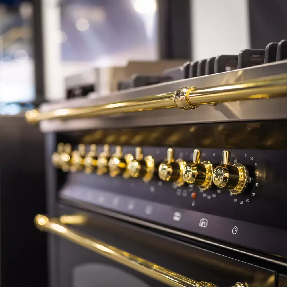 Kuchnia gazowa LOFRA Dolcevita 60 to elegancka propozycja w stylu retro, inspirowana klasycznym włoskim wzornictwem. Model o szerokości 60 cm doskonale sprawdzi się w kuchniach, w których liczy się zarówno funkcjonalność, jak i dopracowany, dekoracyjny charakter wyposażenia. Linia Dolcevita wyróżnia się subtelnymi detalami i harmonijną formą, które nadają wnętrzu wyjątkowego stylu. Złote wykończenia podkreślają elegancję kuchni i dodają całości wyrafinowanego, luksusowego charakteru. Starannie dopracowane detale tworzą spójną kompozycję, dzięki której kuchnia staje się nie tylko praktycznym sprzętem, ale również elementem dekoracyjnym przyciągającym uwagę.