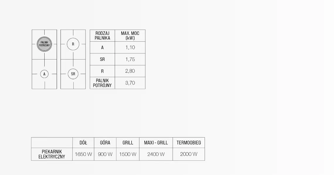 | Typ grzewczy: | Gazowa (płyta grzewcza) Elektryczny (piekarnik) |