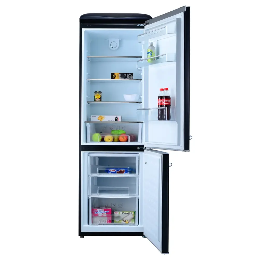 Lodówka retro LOFRA Vintage 300 to pojemna chłodziarko-zamrażarka zaprojektowana z myślą o wygodnym przechowywaniu większej ilości produktów. Całkowita pojemność 300 litrów zapewnia dużo miejsca na codzienne zakupy oraz zapasy, a wyraźny podział na chłodziarkę i zamrażarkę ułatwia uporządkowanie produktów świeżych i mrożonych. Charakterystyczny design retro sprawia, że urządzenie staje się nie tylko praktycznym elementem kuchni, ale również stylowym akcentem aranżacyjnym.