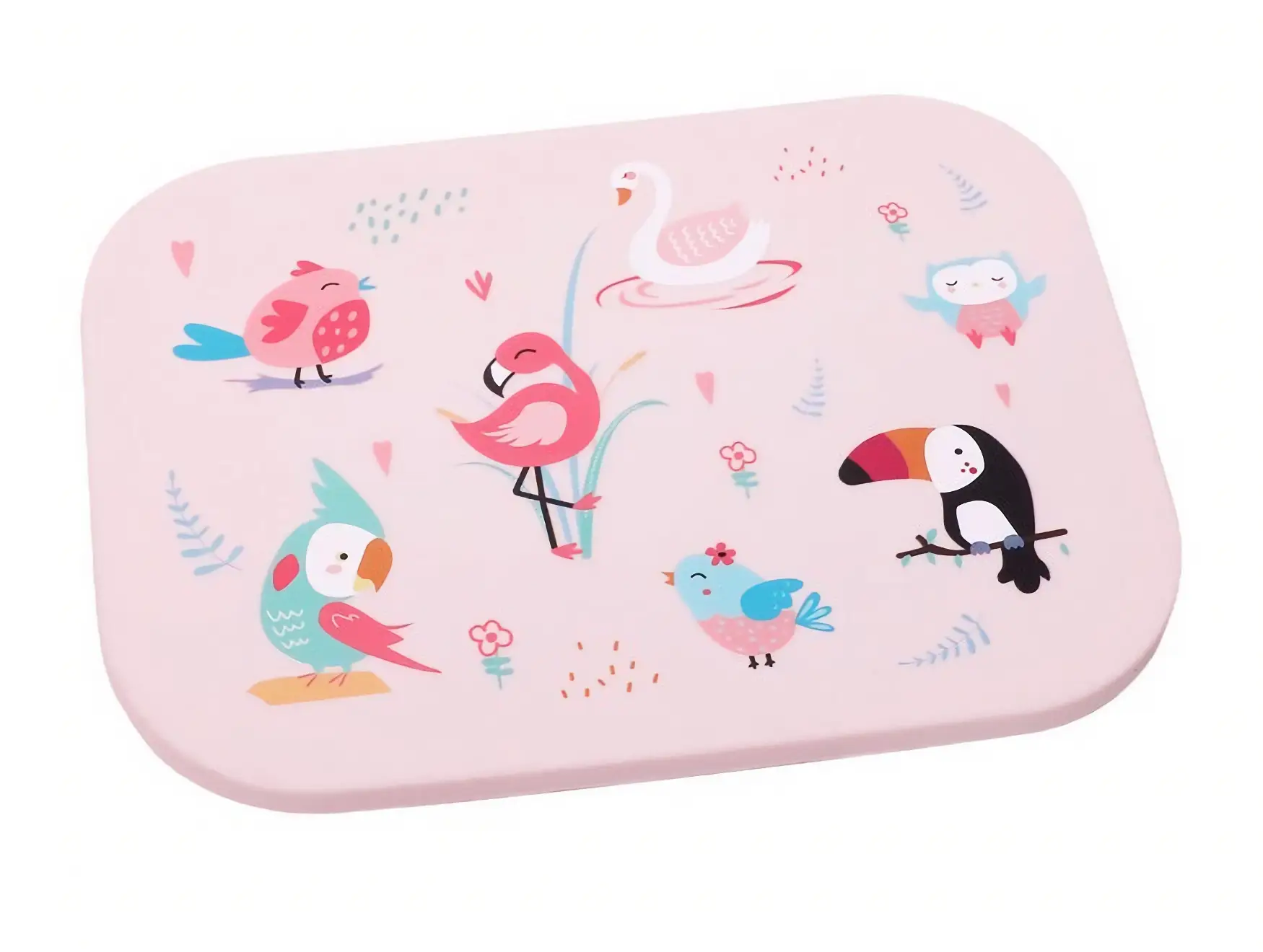 Prezentowany lunchbox dziecięcy z motywem Birds ma jasnoróżowy kolor i ozdobiony został wzorem symbolicznie przedstawiającym ptaki. Jego korpus wykonany został ze stali nierdzewnej, a pokrywka z silikonu, dzięki czemu łatwo się ją nakłada i zdejmuje. Wewnątrz lunchbox posiada wyjmowany również wykonany z silikonu 2-komorowy pojemnik, który pozwala lepiej zorganizować posiłek, umożliwiając np. oddzielenie kanapek od przekąsek. Duża pojemność 1200 ml zapewnia możliwość zmieszczenia pełnego posiłku do szkoły czy na wycieczkę. Dodatkową zaletą lunchboxu jest łatwość w utrzymaniu go w czystości - wszystkie elementy można myć zarówno ręcznie jak i w zmywarce.
