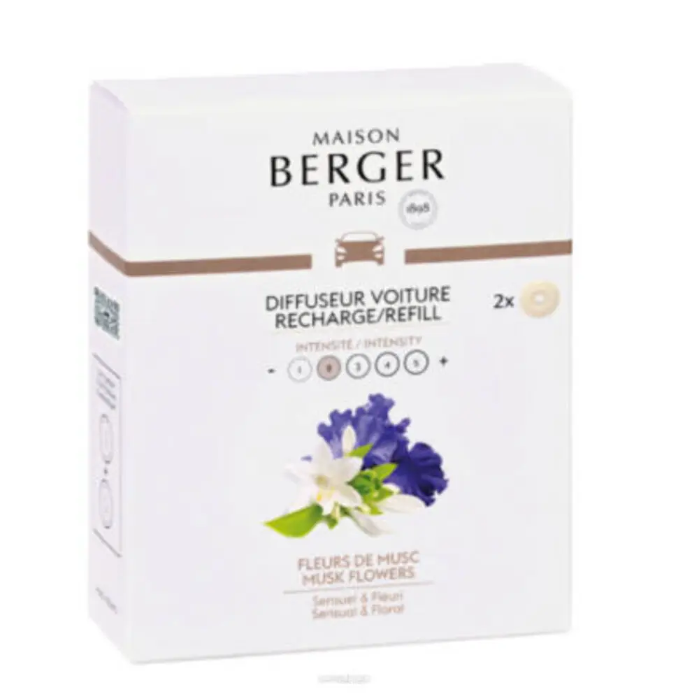 Zestaw 2 wkładów do dyfuzorów samochodowych. Elegancki i szykowny zapach stworzony na bazie porywającej kompozycji bukietu kwiatów piżma.