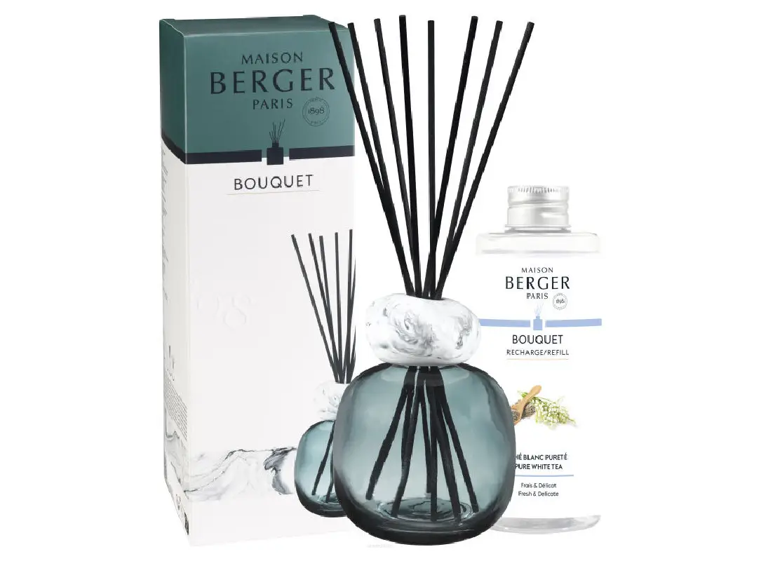 Maison Berger Paris - Zestaw patyczki zapachowe Minerały niebiesko-białe + Biała Herbata