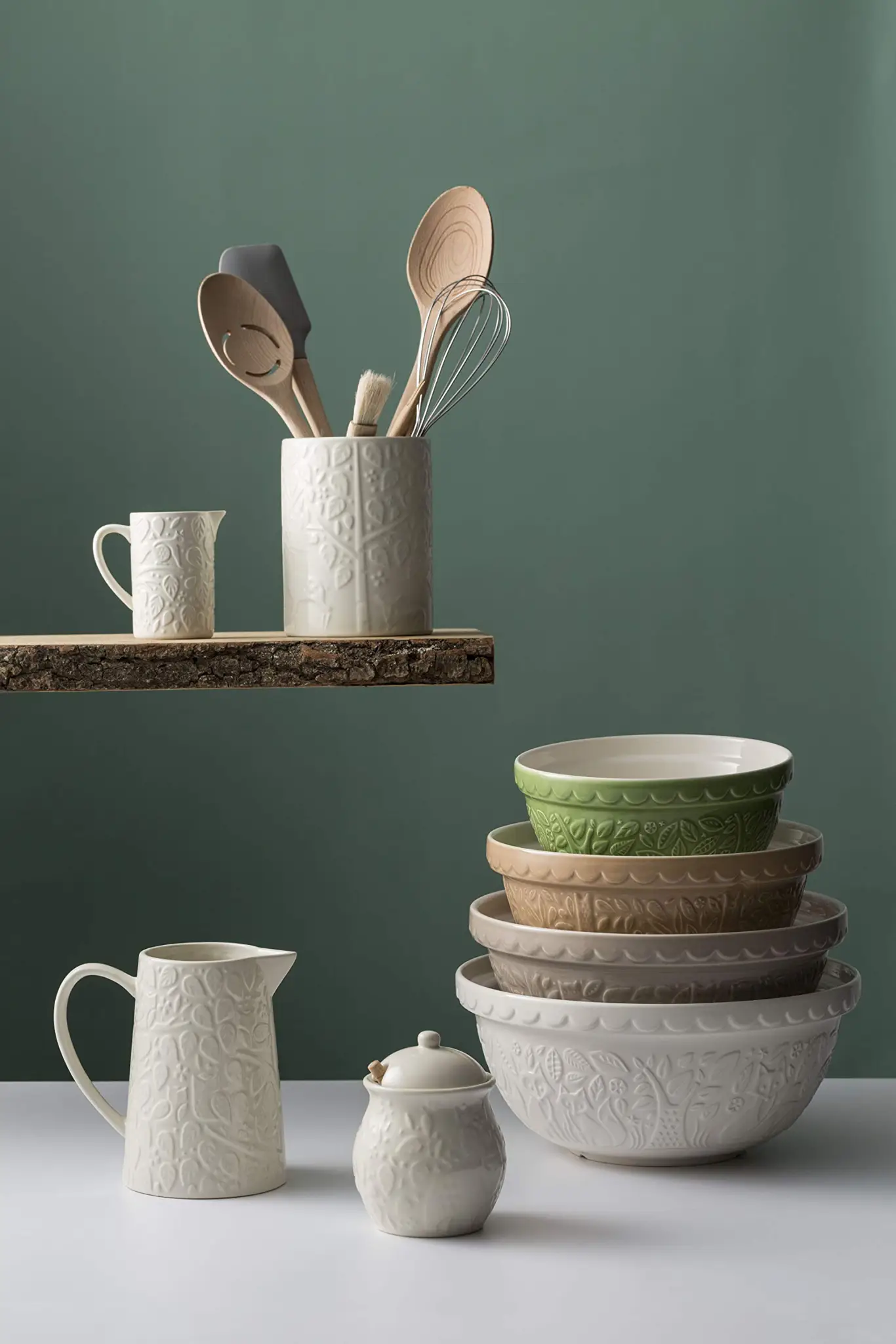 Marka Mason Cash oferuje produkty łączące lata doświadczenia, tradycję oraz wysoką jakość materiałów. Kolekcja In the forest zainspirowana została opowieściami ludowymi z połowy XIX wieku i tworzą ją m.in. dzbanki, miski, naczynia do zapiekania, pojemniki na żywność czy wyciskacz do cytrusów charakteryzujące się tłoczonymi wzorami na ściankach oraz figurki do uwalniania wilgoci, misy do serwowania i przyprawniki utrzymane w leśnym motywie.