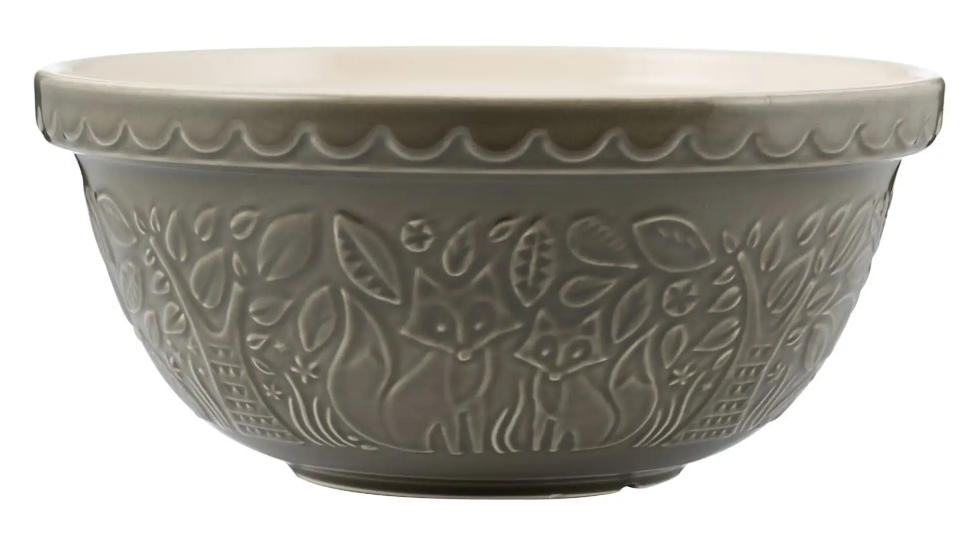 Prezentowana miska o dużej pojemności 4 L idealnie nada się do wygodnego mieszania składników oraz wyrabiania ciast. Po zewnętrznej stronie ma ona szary kolor, wewnątrz jest kremowa. Wykonana została z odpornej na odpryskiwanie kamionki. Miska została wyposażona w brzeg do trzymania jedną ręką, co ułatwi korzystanie z niej. Dodatkowo nadaje się ona do mycia w zmywarce oraz używania w kuchence mikrofalowej. Unikalny wzór lisków i roślin sprawia, że miska ciekawie zaprezentuje się w kuchni.