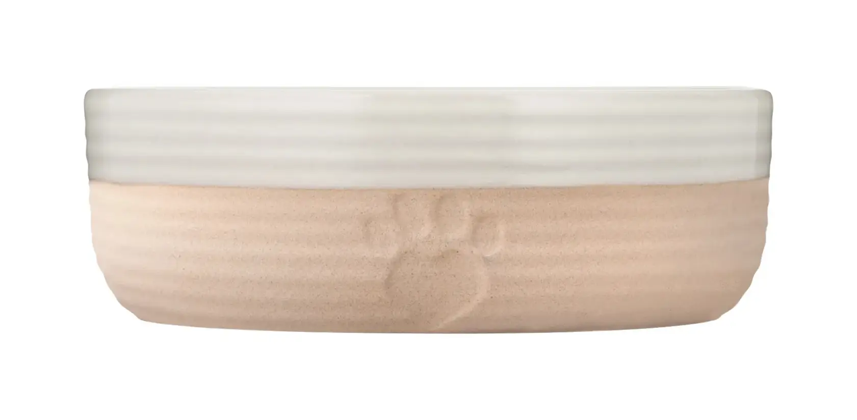 Prezentowana miska Heart Paw o wymiarach 15 x 5 cm (śr. x wys.) i pojemności 500 ml doskonale nada się zarówno na karmę jak i wodę dla średnich kotów i psów. Beżowo-kremowy kolor, żebrowanie i tłoczony wzór łapki na zewnętrznej stronie sprawiają, że estetycznie się prezentuje - można ją będzie trzymać na zewnątrz nawet gdy zwierzę nie będzie z niej korzystać. Miska nadaje się ona do schładzania w zamrażarce - pokarm lub woda pozostają dłużej chłodne. Dodatkowo jest łatwa w czyszczeniu - nadaje się ona do mycia ręcznego lub z pomocą zmywarki.