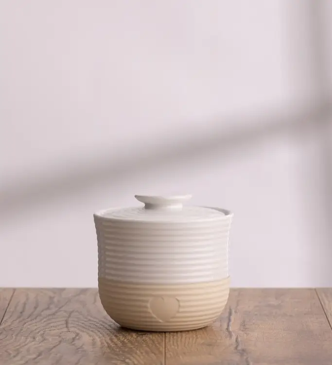 Prezentowany pojemnik ma pojemność 0,7 L i wymiary 12,7 x 12 cm (śr. x wys.). Idealnie nada się do przechowywania produktów sypkich np. cukru czy ryżu. Produkt wykonany został z kamionki, która nie przejmuje zapachów ani nie wpływa na smak. Jego zewnętrzne ścianki są żebrowane, co w połączeniu z beżowo-kremowym kolorem sprawia, że estetycznie wyglądać będzie na blacie lub w szafce. Pojemnik nadaje się wyłącznie do mycia ręcznego.