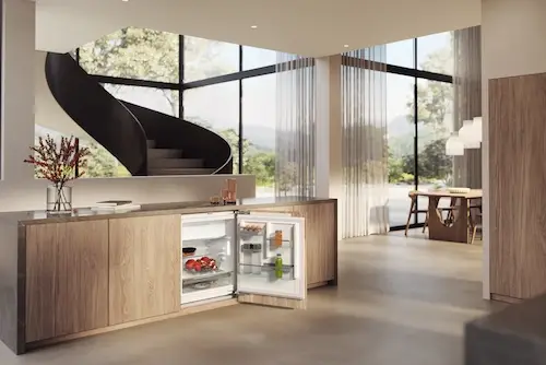 Urządzenie do zabudowy to eleganckie i praktyczne rozwiązanie dla osób ceniących spójny wygląd kuchni oraz funkcjonalność. Chłodziarka Miele KU 7016 D oferuje kompaktową pojemność idealną do zabudowy podblatowej, zapewniając wygodne przechowywanie produktów spożywczych. Wyposażona w półki ComfortClean, które ułatwiają higieniczne czyszczenie, oraz energooszczędne oświetlenie LED, gwarantuje doskonałą widoczność wnętrza. Funkcja SuperCool szybko schładza nowo włożone artykuły, chroniąc świeżość pozostałych produktów. Solidne wykonanie i staranne wykończenie zapewniają niezawodność i długowieczność urządzenia.