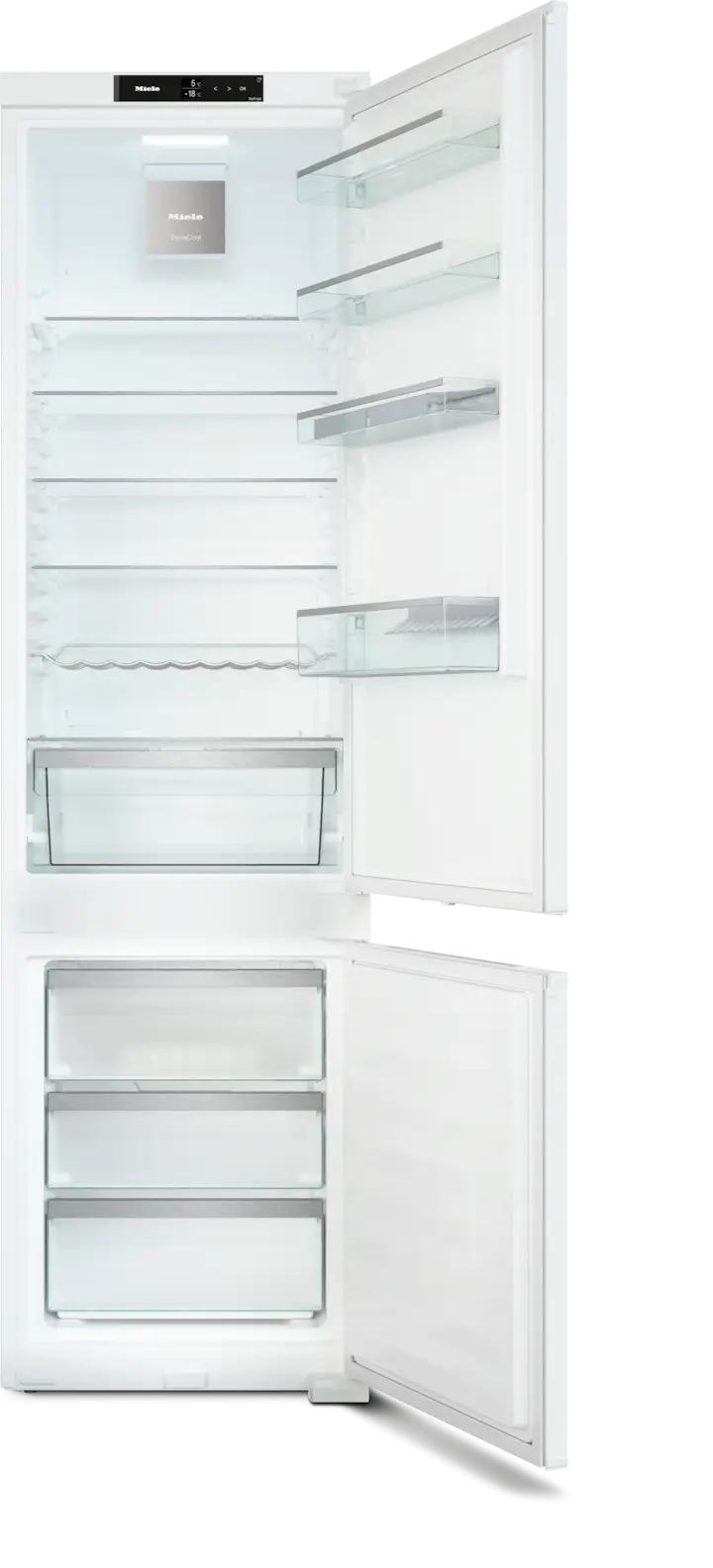 Wbudowana chłodziarko-zamrażarka Miele KFN 7844 C o wysokości 194 cm to innowacyjne urządzenie, które oferuje przestronne wnętrze do przechowywania żywności. Dzięki cichej pracy idealnie wpasuje się w każdą kuchnię. Technologia PerfectFresh Pro wydłuża świeżość produktów, a system NoFrost eliminuje konieczność rozmrażania. Pojemność całkowita wynosząca 284 litry zapewnia wygodę użytkowania. Funkcja DynaCool gwarantuje równomierną cyrkulację powietrza, a możliwość integracji z systemem Miele@home pozwala na zdalne sterowanie urządzeniem.
