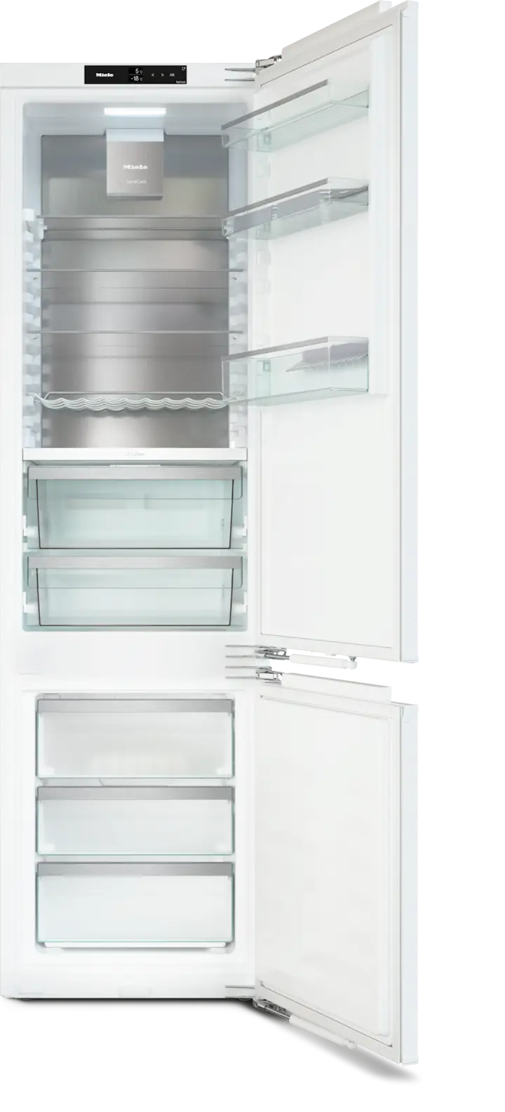 System NoFrost eliminuje konieczność rozmrażania, zapewniając równomierne chłodzenie i cyrkulację suchego powietrza. Dzięki temu we wnętrzu urządzenia nie gromadzi się lód, a mrożonki i szuflady pozostają wolne od oblodzenia, co ułatwia ich otwieranie i zamykanie. To wygodne rozwiązanie gwarantuje optymalny komfort przechowywania i na zawsze eliminuje potrzebę ręcznego odmrażania.