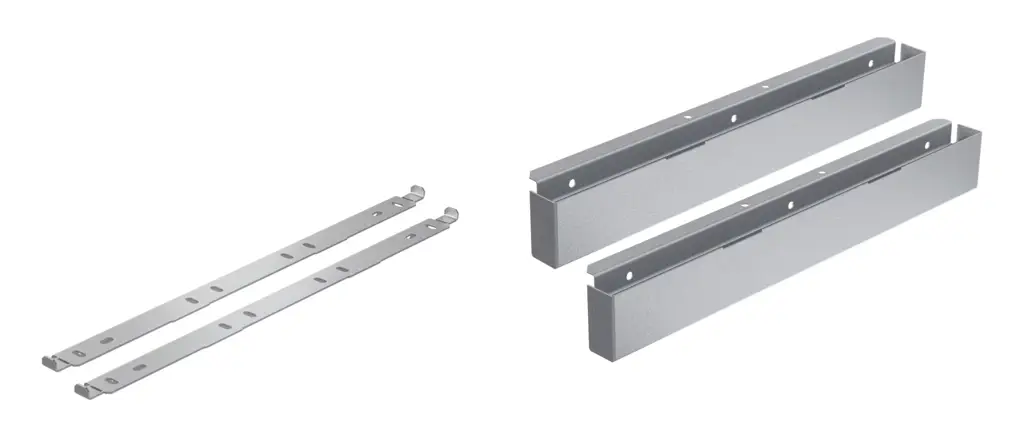 Listwy wyrównawcze 2 szt. DASL 38 o wymiarach 31 x 1,6/1,9 x 3,8 cm (gł. x szer. x wys.) od Miele. W komplecie 2 listwy i materiał montażowy. Przeznaczone do montażu pod skróconymi ściankami bocznymi szafki. Do wymiany DA 35xx/36xx na DAS 4x40/8x30.