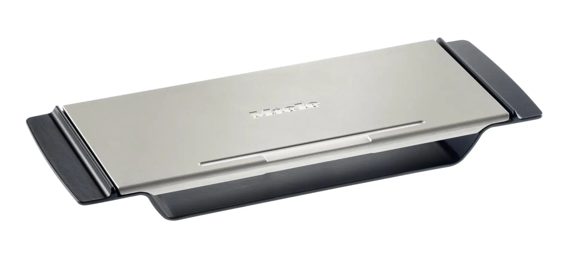 Oryginalna płyta podgrzewająca WHP 70 od Miele. Składa się z płyty podgrzewającej, podstawki i 2 uchwytów. Przeznaczona do piekarnika lub urządzenia do gotowania na parze z piekarnikiem. Pozwala na serwowanie potraw na ciepło. Płytę należy wsunąć w drabinki boczne lub ustawić na FlexiClips, a następnie odgrzewać 20–30 minut w temperaturze 180–200°C w programie Termonawiew Plus.