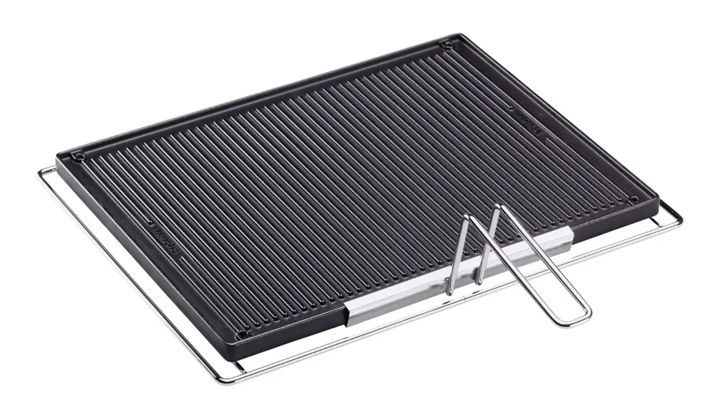 Płyta grillowa CSGP 1400 od Miele. Idealna do grillowania i smażenia mięsa, ryb, warzyw i wielu innych. Wykonana z żeliwa ze specjalną emalią. Przeznaczona do użytkowania obustronnie - jedna strona gładka, druga żłobkowana. W komplecie zdejmowany uchwyt dla prawo- i leworęcznych. Produkt perfekcyjnie dopasowany do płyty CombiSet Miele CS 1322 BG.