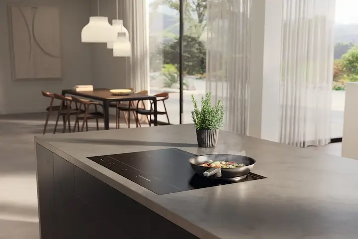 Ponadto funkcja automatyczne rozpoznawania obecności naczynia. Wystarczy postawić garnek lub patelnię na płycie i uruchomić strefę grzejną – odpowiedni panel sterowania aktywuje się sam. System samodzielnie wykrywa też wielkość naczynia, by jeszcze lepiej dopasować moc grzania i zoptymalizować zużycie energii.