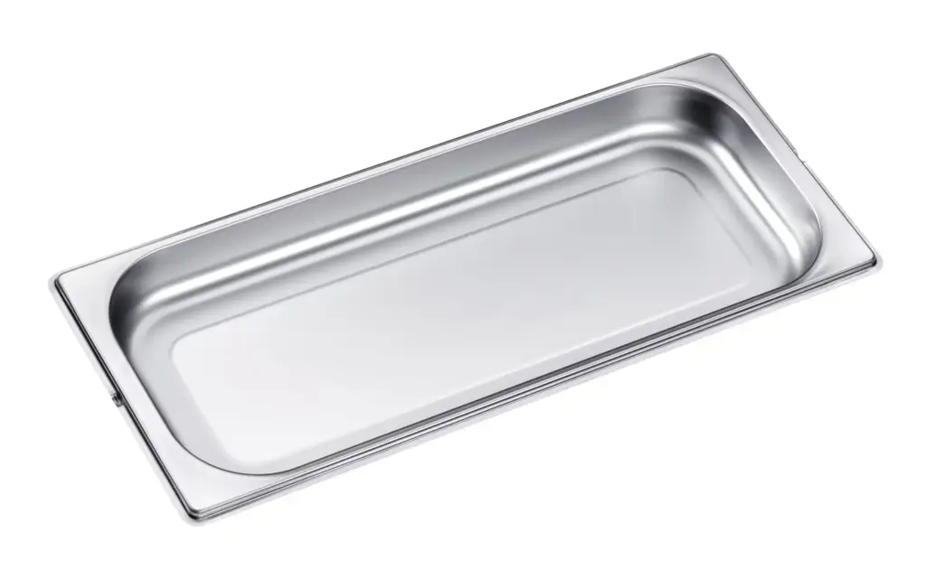 Pojemnik bez perforacji DGG 20 od Miele to profesjonalne akcesorium z europejskiej produkcji o pojemności 2,4 L (pojemność użytkowa: 1,8 L) i wymiarach 45 x 19 x 4 cm (szer. x głęb. x wys.). Wykonany ze stali szlachetnej - grubość ścianki 0,6 mm. Idealnie sprawdzi się do przyrządzania potraw w sosie, bulionie i wodzie - m.in. makaronu, ryżu, zup i zapiekanek. Produkt pasuje do piekarników parowych Miele.