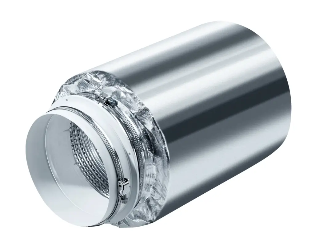 Tłumik DASD 150 od Miele. Do zmniejszenia hałasów powietrza i silnika wyciągów kuchennych. Zapewnia redukcję hałasu nawet do 4,5 db(A) re 1 pW. Ma długość 250 mm i dysponuje po każdej stronie króćcem przyłączeniowym 150 mm. Przeznaczony do produktów tej samej marki.