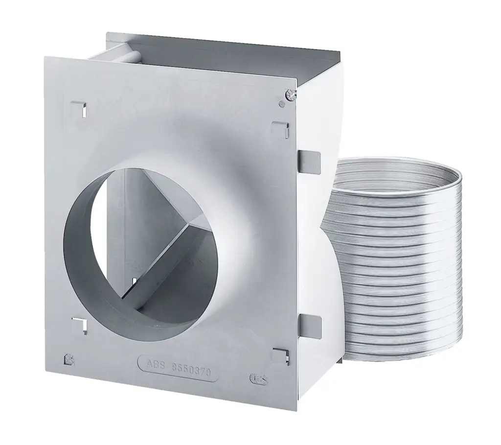Zestaw do przebudowy obiegu z otwartego na zamknięty DUW 20 od Miele. Przeznaczony do wyciągów przyściennych tej samej firmy. Zapewnia równomierny wydmuch powietrza w zamkniętym obiegu powietrza oraz zmniejszenie hałasów przepływu powietrza. W komplecie zwrotnica i króciec Ø 150 mm.