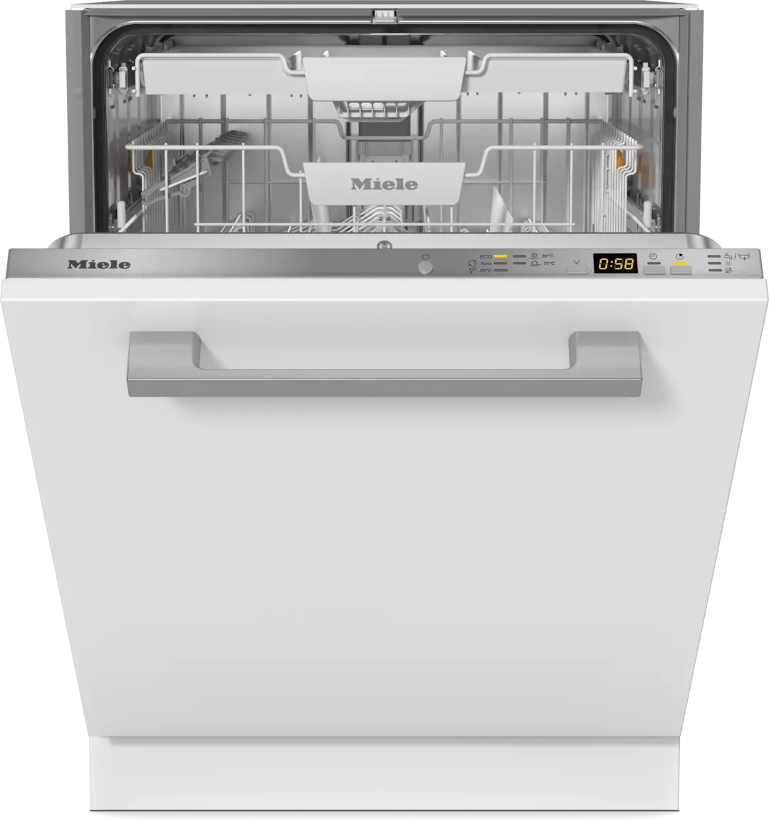 Zmywarka bez problemu mieści nawet do 14 kompletów naczyń. Oryginalna szuflada na sztućce Miele zapewnia dokładne i delikatne czyszczenie sztućców, a kosz górny z regulacją wysokości i obszar MultiComfort w koszu dolnym zapewniają elastyczne sortowanie różnych typów naczyń. Na komfort używania wpływ mają także oznaczenia FlexAssist dzięki którym od razu widać które elementy wyposażenia są mobilne. Małe symbole, jak np. symbol filiżanki lub kieliszka wina na kolorowych elementach, podają wskazówki dotyczące wykorzystania obszaru. Równocześnie oznaczenia te służą jako uchwyty - dzięki temu można optymalnie wykorzystać elastyczność koszy jednym ruchem ręki.