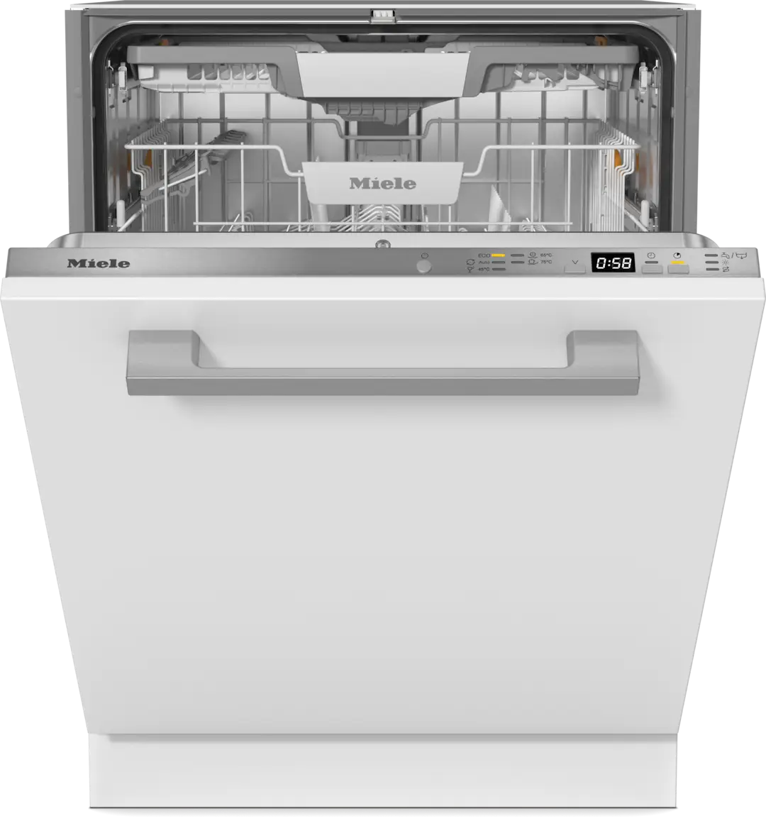 Zmywarka bez problemu mieści nawet do 14 kompletów naczyń. Oryginalna szuflada na sztućce Miele zapewnia dokładne i delikatne czyszczenie sztućców, a kosz górny z regulacją wysokości i obszar MultiComfort w koszu dolnym zapewniają elastyczne sortowanie różnych typów naczyń. Na komfort używania wpływ mają także oznaczenia FlexAssist dzięki którym od razu widać które elementy wyposażenia są mobilne. Małe symbole, jak np. symbol filiżanki lub kieliszka wina na kolorowych elementach, podają wskazówki dotyczące wykorzystania obszaru. Równocześnie oznaczenia te służą jako uchwyty - dzięki temu można optymalnie wykorzystać elastyczność koszy jednym ruchem ręki.