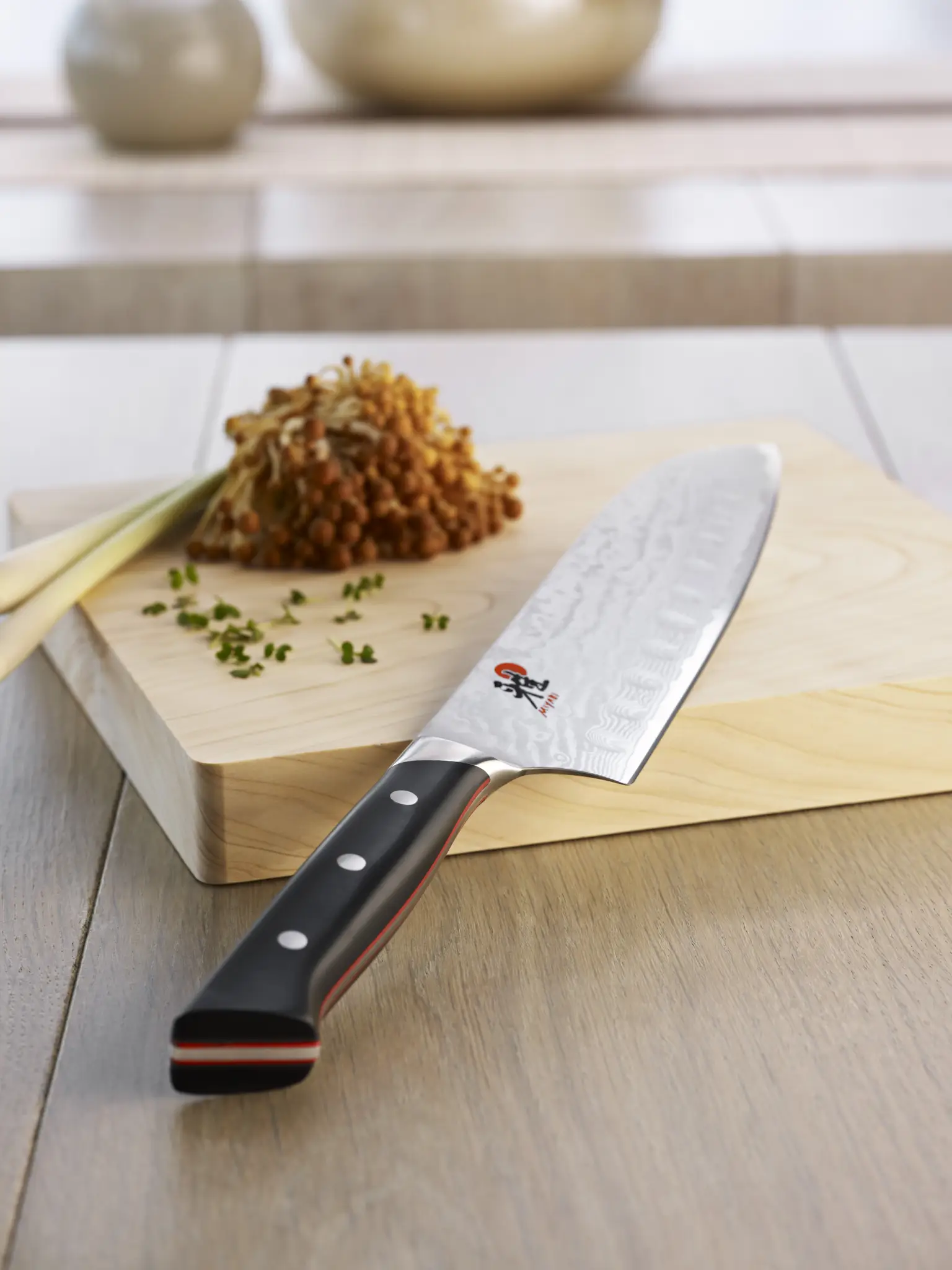 Dzięki desce do krojenia Hinoki możesz wygodnie kroić mięso, warzywa i inne produkty i mieć pewność, że Twoje noże Miyabi pozostaną ostre na długie lata.
