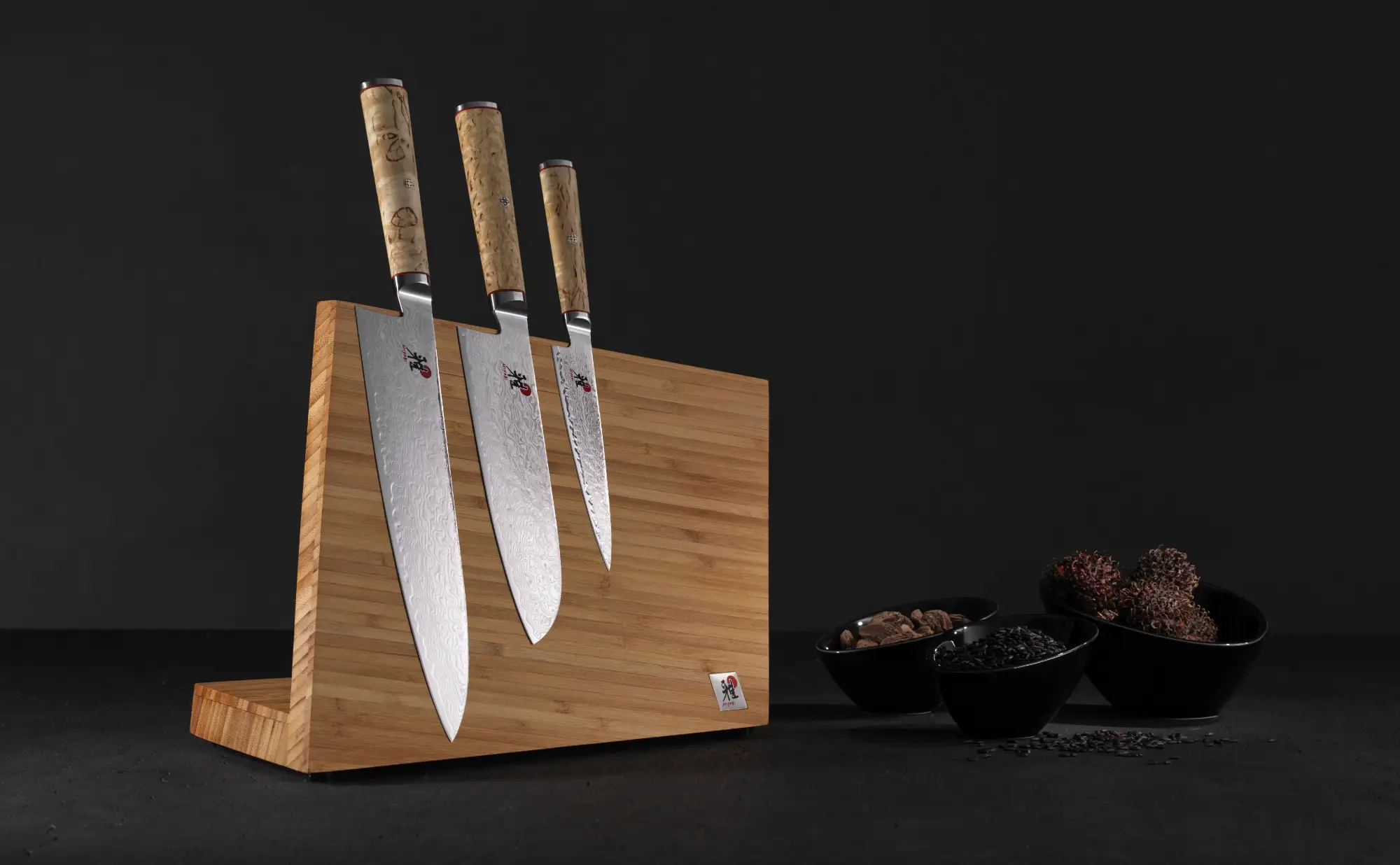 - Rdzeń ostrza ze stali MicroCarbide MC63 osadzony w 100 warstwach stali – dla niespotykanej twardości ok 63 HRC i doskonałych właściwości tnących