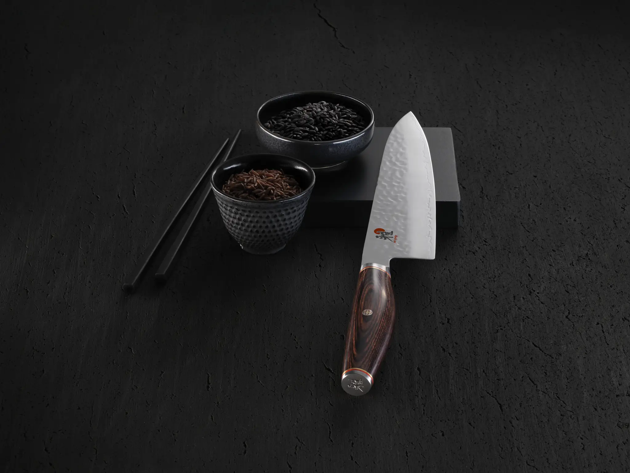Ergonomicznie ukształtowana rączka wykonana jest z kokobolo, czyli ciemnego, gładkiego drewna, które pięknie kontrastuje z ostrzem. Rękojeść ma wygięty kształt, umożliwiający łatwe cięcie. Uchwyt jest dobrze wyważonym standardem dla serii MIYABI 6000MCT. Dzięki temu balansowi możesz pracować przez dłuższy czas bez uczucia zmęczenia.
