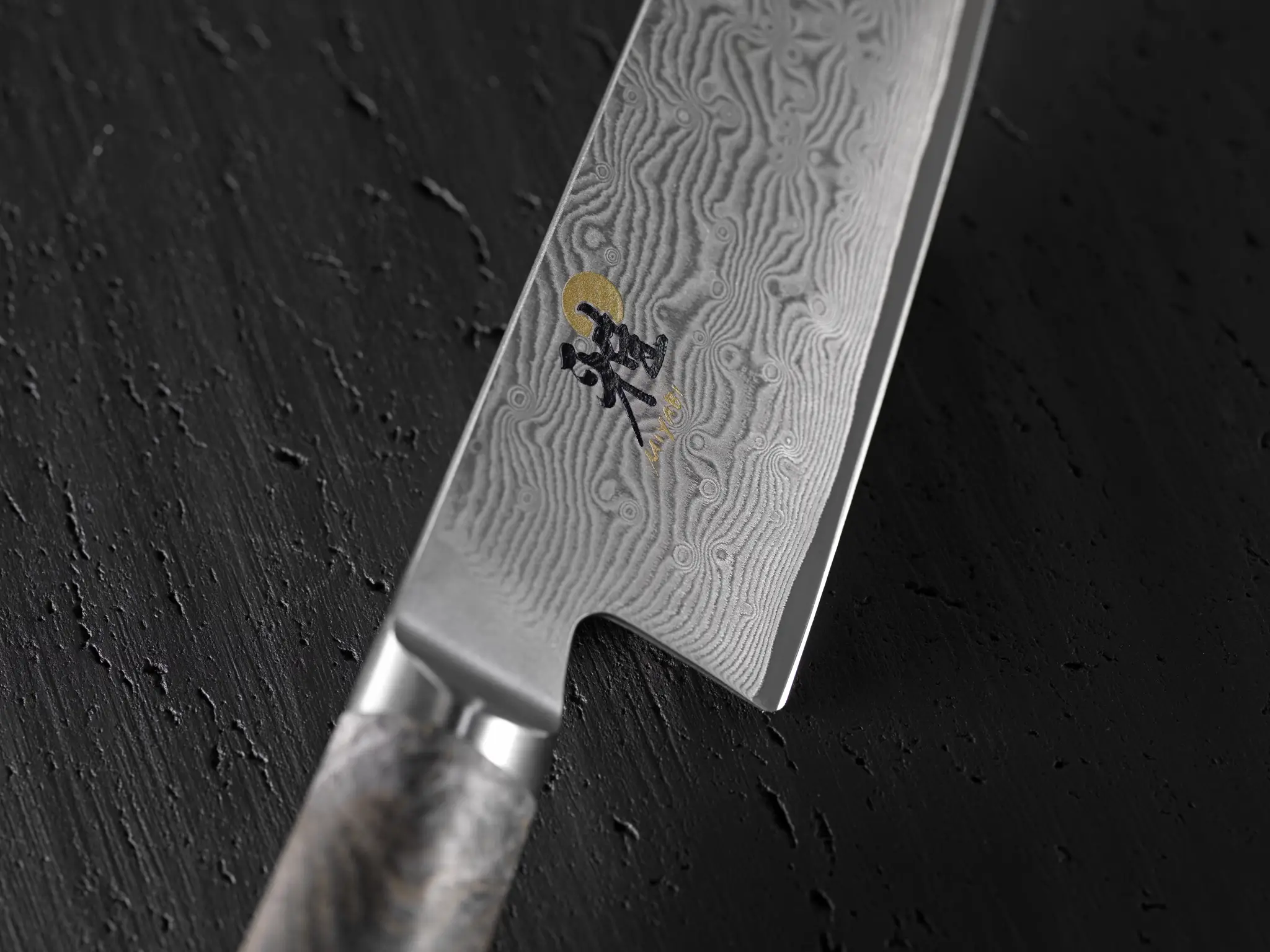 Japoński nóż Santoku od marki Miyabi dzięki wyjątkowo twardemu rdzeniowi wykonanemu z proszkowanej stali MicroCarbide będą Państwo mieli pewność, że krawędź ostrza utrzyma najlepszą ostrość. Santoku jest najlepiej sprzedającym się japońskim rodzajem ostrzy, a nazwa pochodzi od "Trzech cnót", czyli mięsa, ryb i warzyw i to też będzie siekać najlepiej.