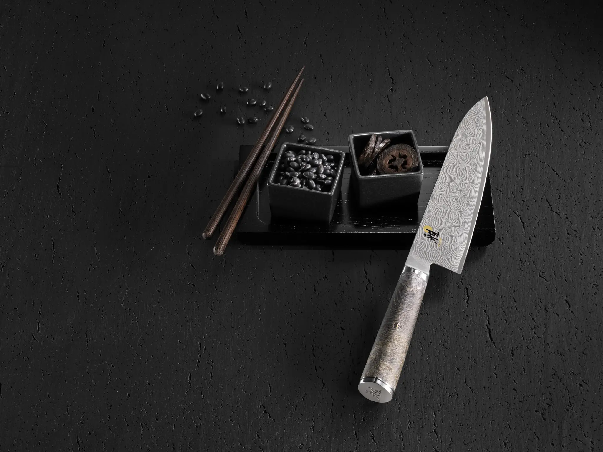 Uchwyt jest wykonany z najwyższej jakości drewna czarnego jesionu w tradycyjnym kształcie japońskich noży. Jego rozmiar i kształt zapewniają optymalną równowagę, dzięki czemu nóż ten jest przyjemny w dotyku, niezależnie od uchwytu i sposobu cięcia.