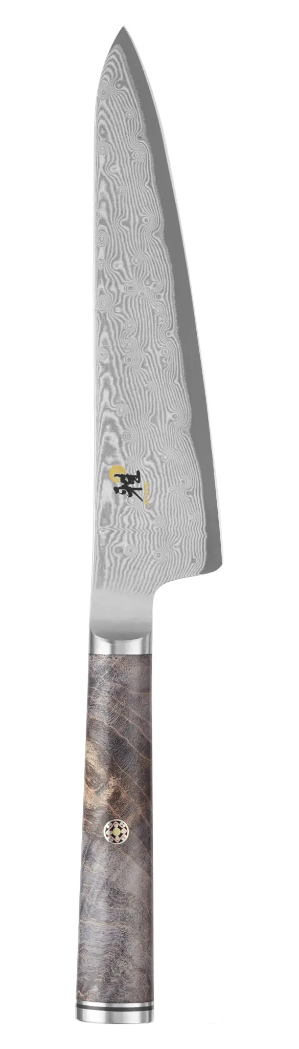 Japoński nóż Shotoh od marki Miyabi stanie się szybko eleganckim dodatkiem w Państwa kuchni dzięki swej wyjątkowej rękojeści oraz charakterystycznego dla tego ostrza damasceńskim wzorem.