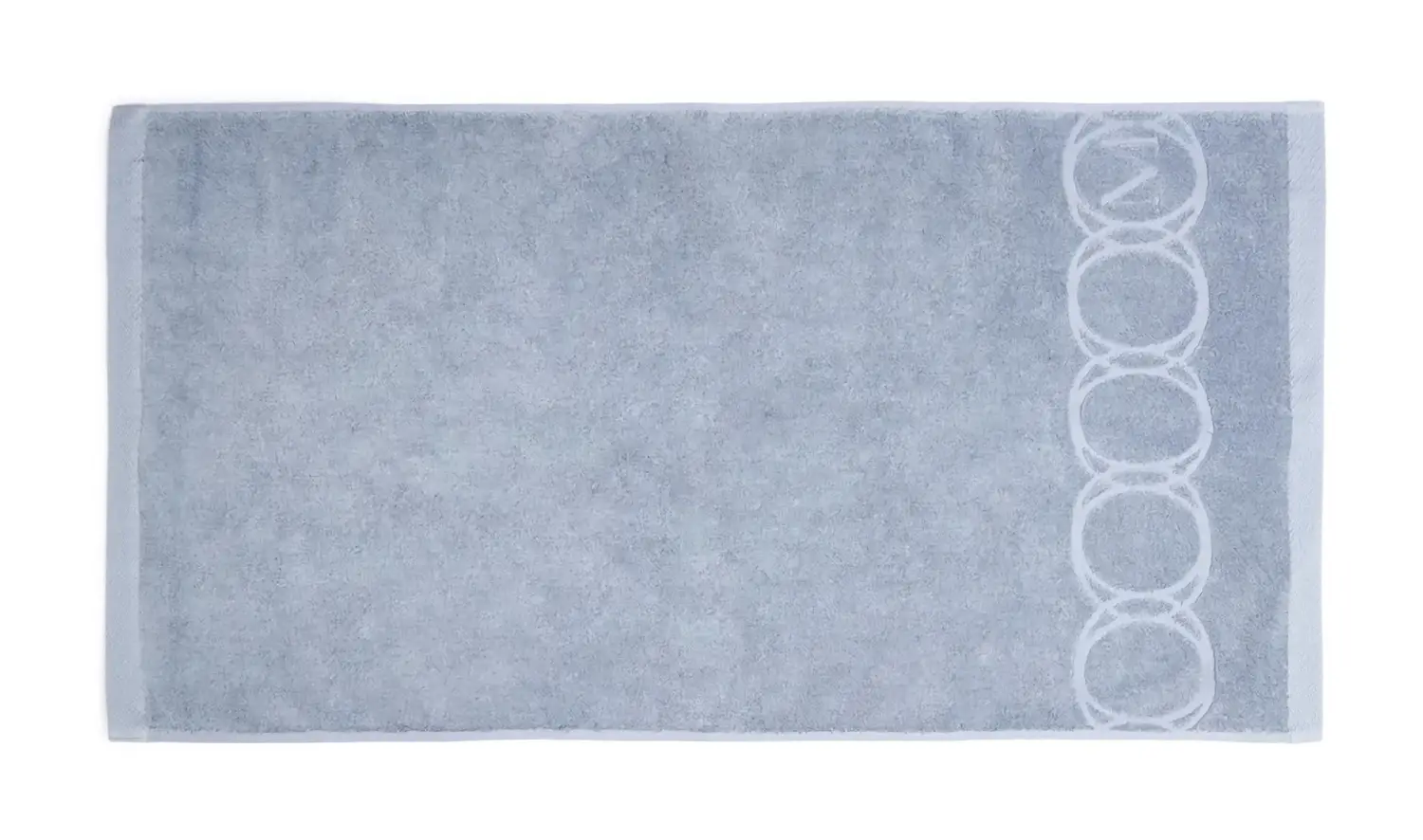 Prezentowany ręcznik do rąk w kolorze szarym z linii Opus ma wymiary 50 x 100 cm i gramaturę 650 gr/m2. Doskonale sprawdzi się na co dzień, umożliwiając wygodne wytarcie dłoni. Wykonano go z odwójnie czesanej, wstępnie pranej bawełny frotte o splocie intrecciato z wytłoczonym wzorem i ozdobną lamówką. Posiada onpodwójne przeszycia i zamknięte rogi. Ponadto dla ułatwienia używania ma on wszytą pętelkę do zawieszania w tym samym kolorze co reszta ręcznika.