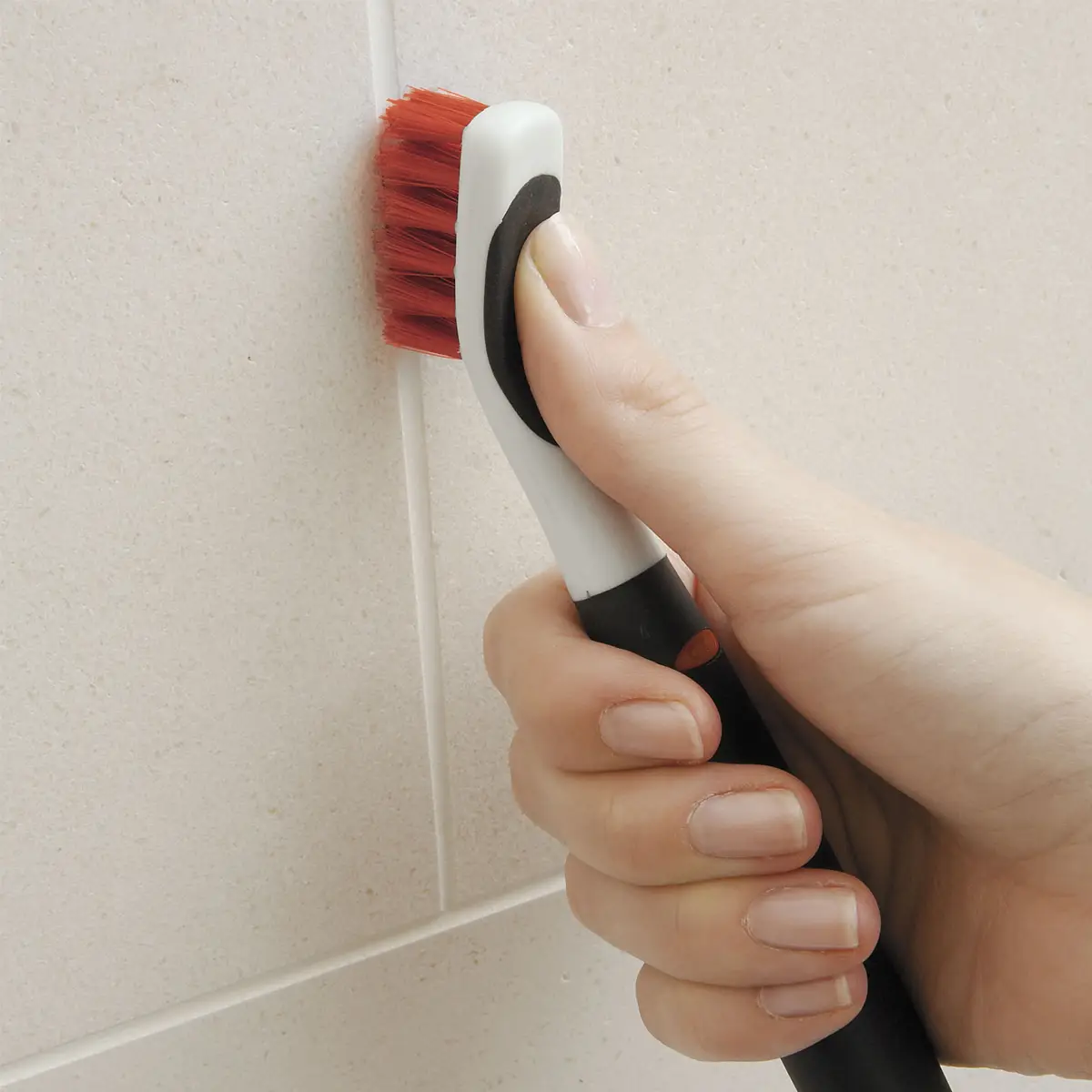 - SZCZOTECZKA DO CZYSZCZENIA FUG I SZCZELIN - z łatwością wyczyści trudno dostępne szczeliny i wąskie miejsca. Idealnie sprawdzi się do mycia prowadnic prysznicowych i baterii kuchennych lub łazienkowych. Wąskie rzędy mocnego włosia łatwo usuwają brud, pleśń i osad z mydła. Kauczukowe wykończenie wierzchu zapewnia komfort i bezpieczeństwo, zapobiegając odgniataniu kciuka podczas dociskania szczotki.