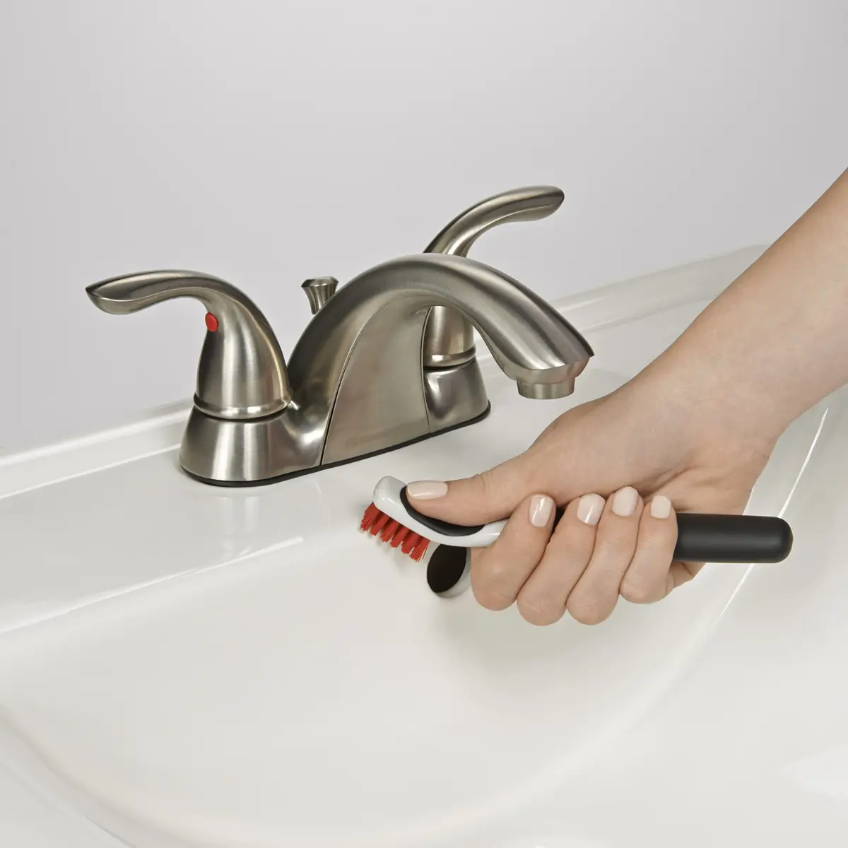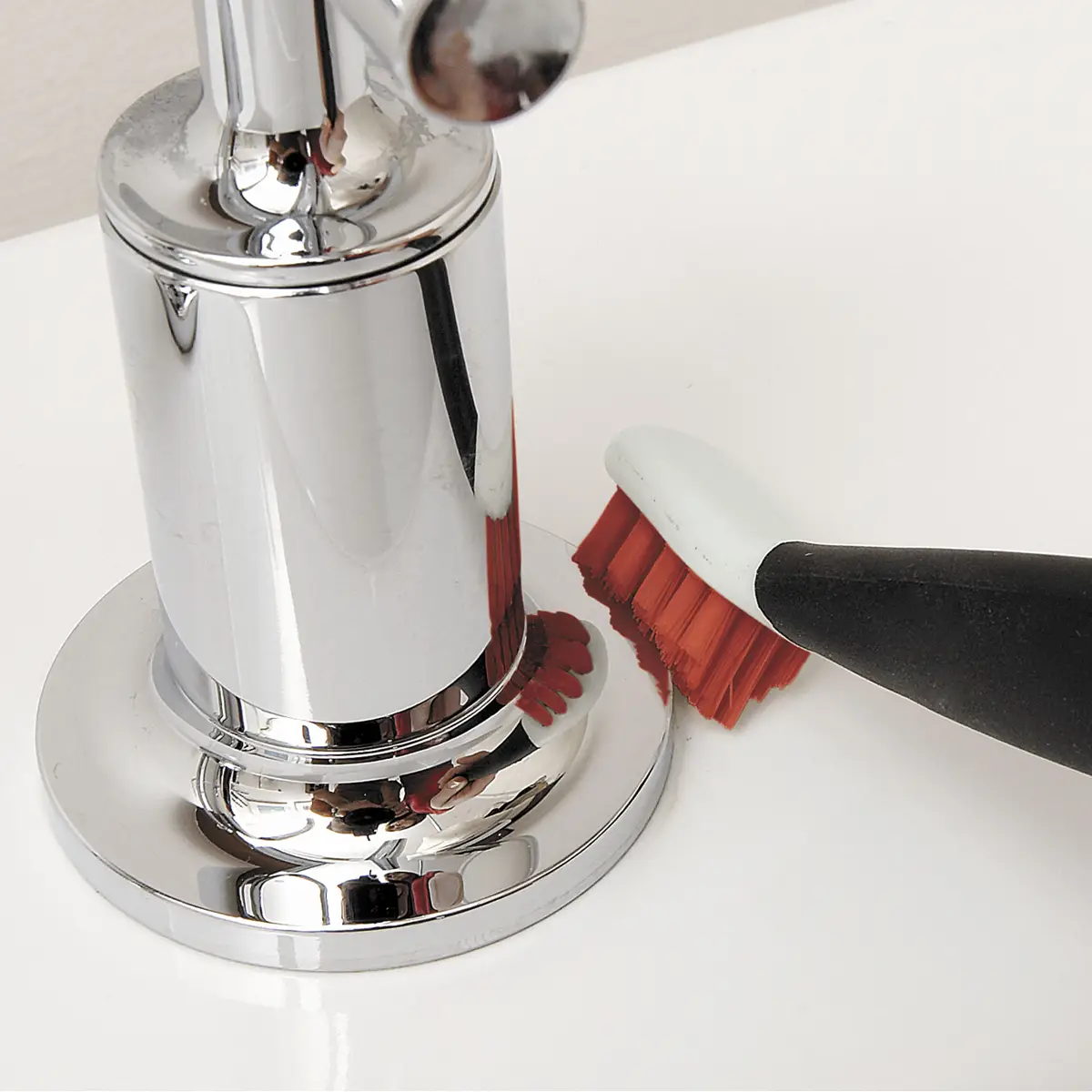 - SZCZOTKA DO CZYSZCZENIA NAROŻNIKÓW I KRAWĘDZI - posiada dwie końcówki - z twardego włókna i kauczuku. Wyprofilowane włókno przeznaczone jest do czyszczenia ciasnych miejsc np. krawędzi w prysznicu, rantów wanny lub parapetów. Kauczukowa końcówka ułatwia pozbycie się brudu i osadów z wąskich szczelin, np. wokół odpływów umywalek i wanien.