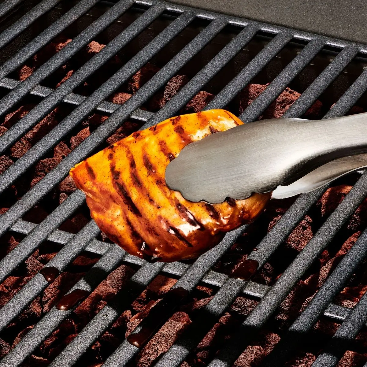 Solidne i praktyczne szczypce marki OXO stworzone zostały do obsługi grilla. Wykonane są z wysokiej jakości stali nierdzewnej, posiadają także antypoślizgowe uchwyty, które zapewniają bezpieczeństwo. Szczypce mają ząbkowane krawędzie, które odpowiadają za pewny i stabilny chwyt. Ich konstrukcja sprawia, że są idealne do obracania i zdejmowania z grilla kiełbasek, kaszanek, szaszłyków czy warzyw. Narzędzie dodatkowo posiada wbudowany otwieracz do butelek oraz haczyk do wygodnego zawieszania. Można myć w zmywarce.