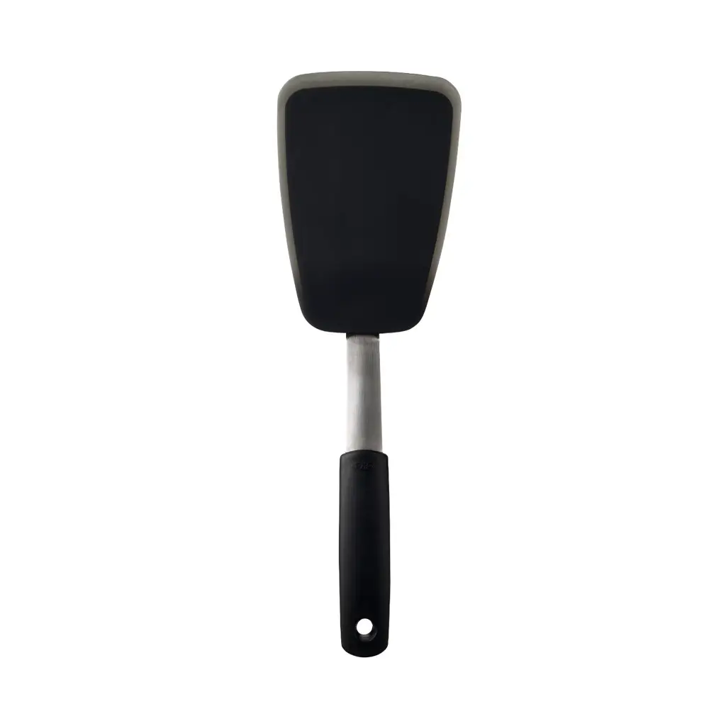 Szpatuła do smażenia sprawdzi się świetnie do odwracania i serwowania różnego rodzaju potraw. Płaska, idealnie wyprofilowana końcówka z łatwością wsuwa się pod potrawy. Narzędzia kuchenne Flex marki Oxo z kolekcji Good Grips łączą wytrzymałość stali nierdzewnej z elastycznością silikonu. Elastyczne końcówki ze stali powleczone wysokiej jakości silikonem odpornym na temperaturę do 315 stopni C, przeznaczone są do naczyń teflonowych, ceramicznych i wszelkich powierzchni z powłoką typu non-stick.