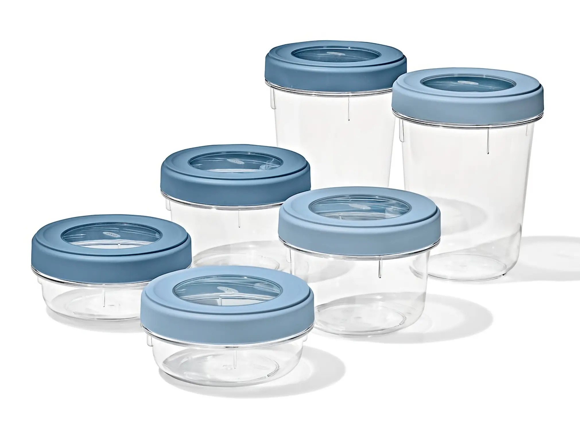 Prezentowany zestaw z linii Twist & Stack zawiera 2 pojemniki o pojemności 946 ml i wymiarach 11,7 x 15,4 cm (śr. x wys.). Wykonano go z tworzywa sztucznego bez BPA w niebieskim i przezroczystym kolorze. Pojemniki idealnie nadadzą się do wygodnego przechowywania sałatek, sosów, produktów sypkich itp., zachowując ich świeżość na dłużej. Wyposażono je w odkręcane pokrywki z przyjemnego w dotyku tworzywa. Praktyczne uszczelki na ich spodzie zapewniają odpowiednią szczelność. Zestaw nadaje się do używania w mikrofalówce oraz zamrażarce. Dodatkowo jest łatwy w czyszczeniu - można go myć w zmywarce.