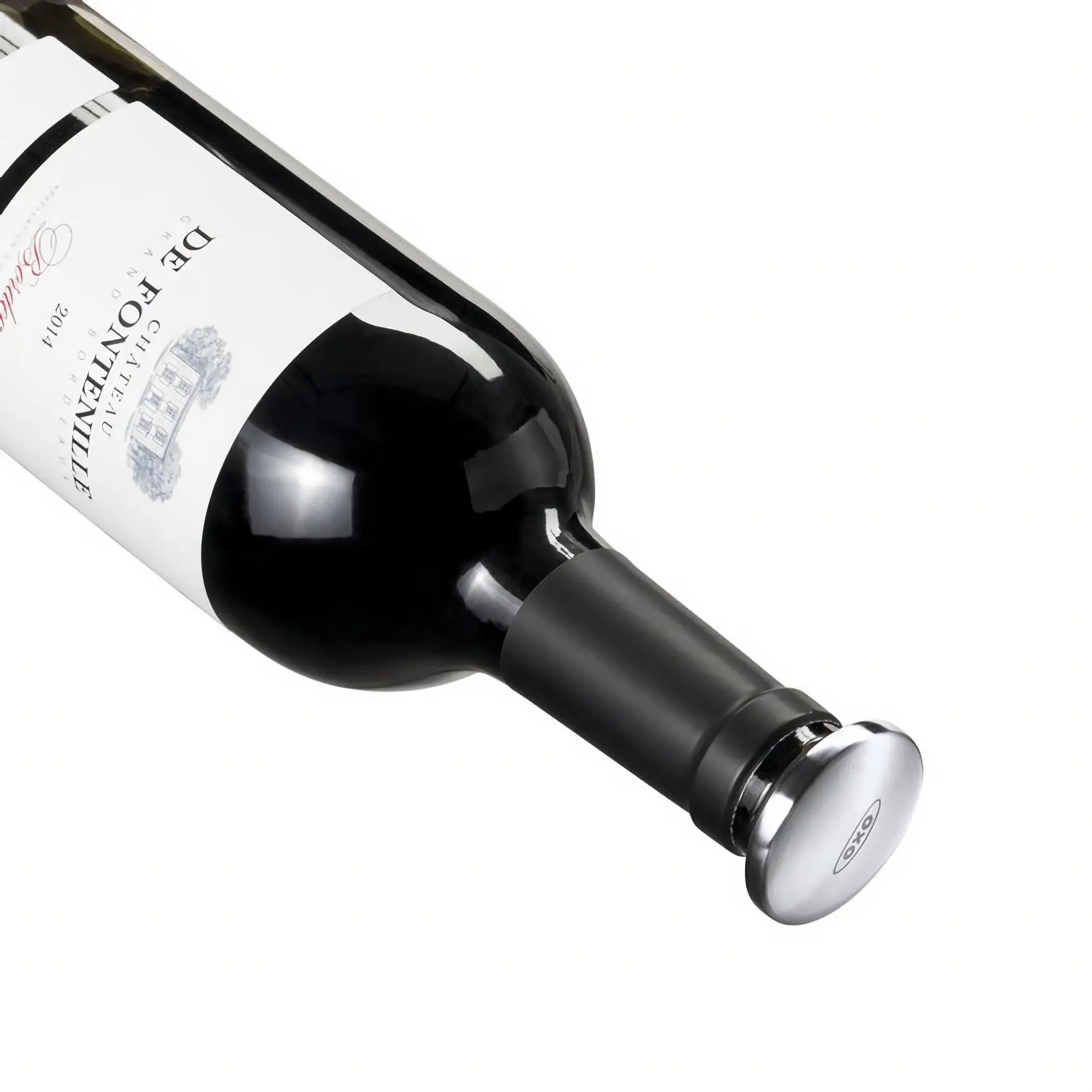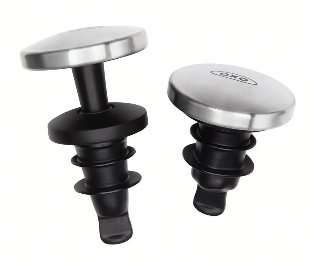 Prezentowany zestaw 2 zatyczek do butelek w kolorze czarno-srebrnym wykonano ze stali nierdzewnej i silikonu. Doskonale sprawdzą się do zamykania otwartego wina, zachowując jego aromat na dłużej, a dzięki pełnej szczelności zapobiegając również wyciekaniu - nawet w pozycji leżącej (łatwe, wygodne przechowywanie). Zestaw jest przy tym łatwy w używaniu - po naciśnięciu płaskich części silikonowe uszczelki się rozszerzają i dopasowują do szyjki butelek. By utrzymać go w czystości należy go myć wyłącznie ręcznie.