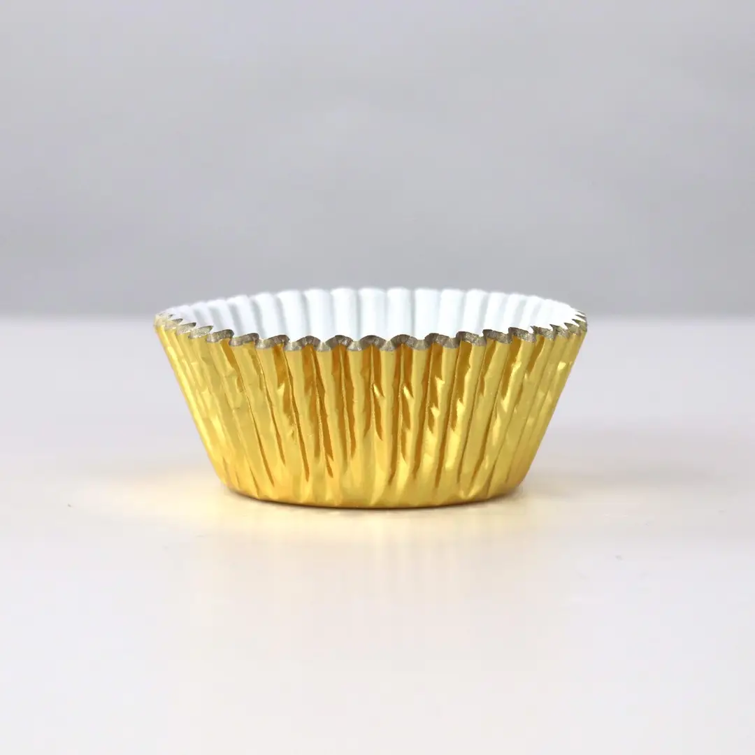 Metaliczne papilotki do babeczek w złotym kolorze, to elegancki i efektowny dodatek do każdego wypieku. Błyszcząca powierzchnia przyciąga wzrok i sprawia, że nawet najprostsza babeczka prezentuje się wyjątkowo.