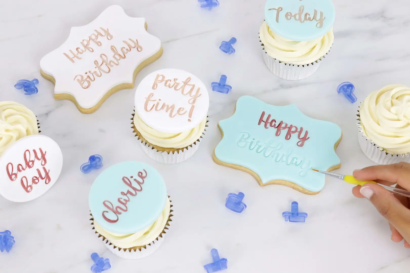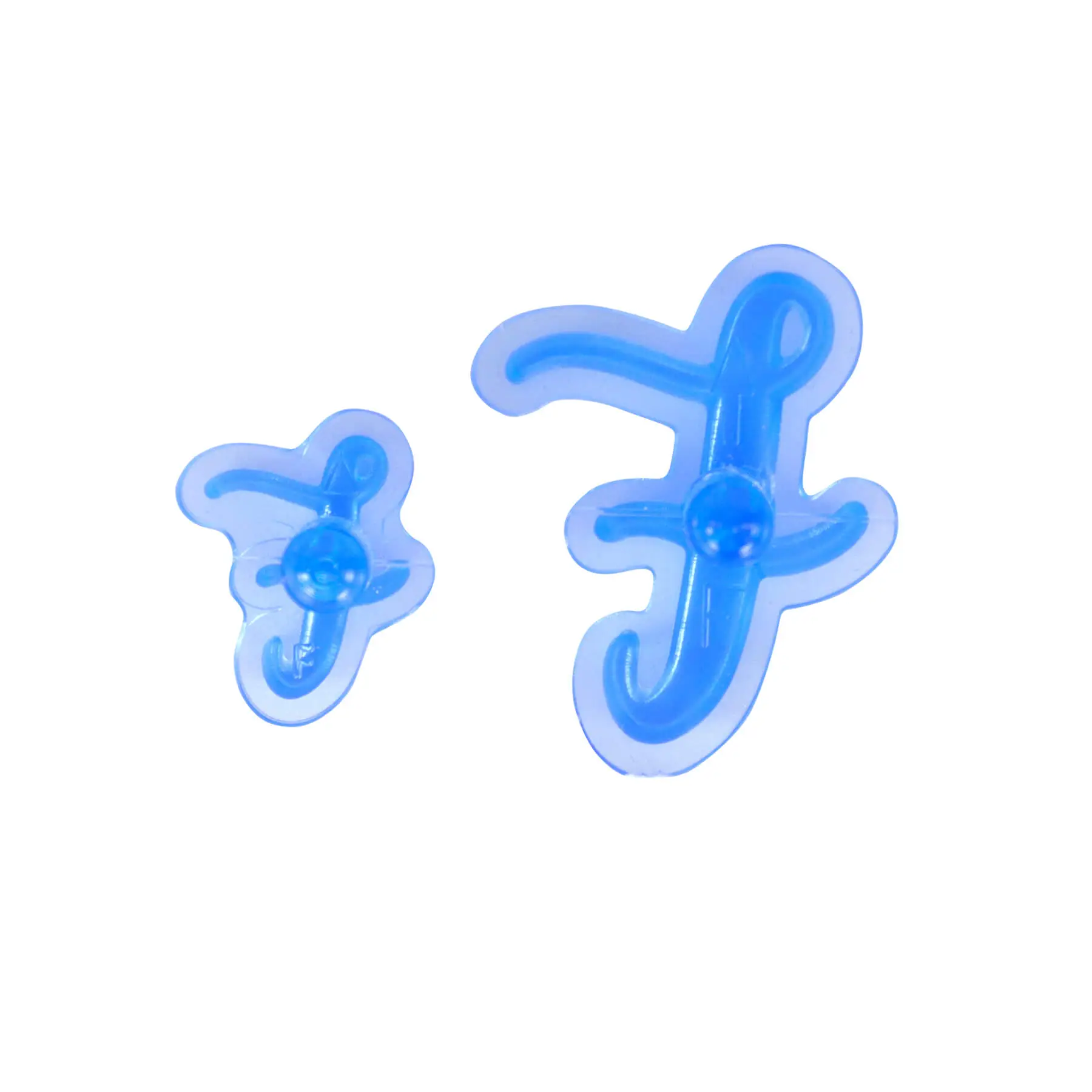 Zestaw foremek do tworzenia napisów w postaci niebieskich pieczątek, to aż 66 elementów, które pozwalają na wygodne i estetyczne odciskanie liter, cyfr oraz symboli w masie cukrowej, lukrze, marcepanie czy glinie. W zestawie znajdują się wszystkie niezbędne znaki: 26 wielkich liter, 26 małych liter, cyfry od 0 do 9 oraz symbole &, ?, #.
