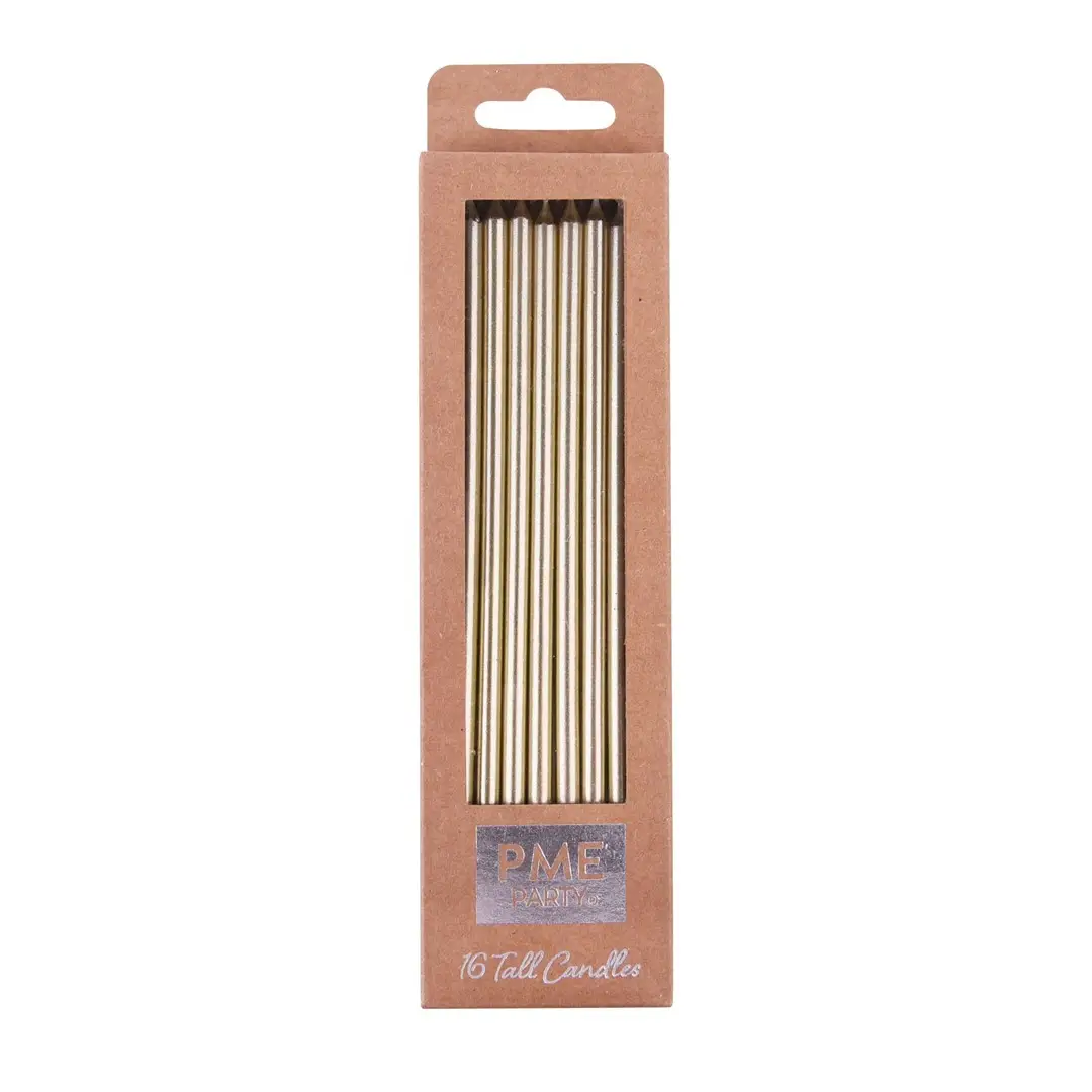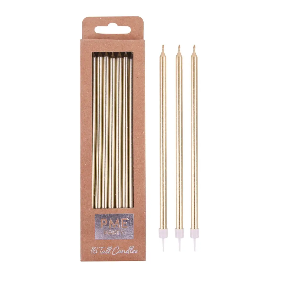 PME Cake - Zestaw wysokich świeczek z podstawkami 16 sztuk Złoty