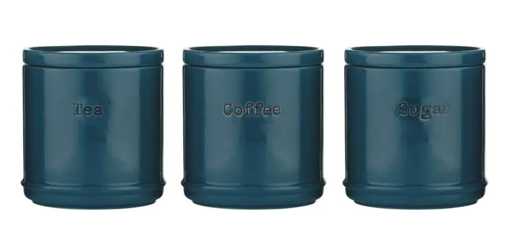 Prezentowany zestaw zawiera 3 pojemniki ceramiczne o pojemności 750 ml i różnym przeznaczeniu: 1 na kawę, 1 na herbatę i 1 na cukier. By łatwo je zidentyfikować każdy z nich ma na ściance wytłoczony napis w języku angielskim informujący o ich zawartości. Jednolity, ciemno-turkusowy kolor w połączeniu z wysokim połyskiem wykończenia sprawia, że komplet elegancko zaprezentuje się w kuchni, pasując do wielu wystrojów. Jednocześnie zestaw jest bardzo praktyczny. Pokrywki z silikonowymi uszczelkami pozwalają na szczelne zamknięcie pojemników, chroniąc umieszczoną w nich żywność przez wilgocią, wietrzeniem i zabrudzeniami. Ich zaletą jest także fakt, że umożliwiają one ustawienie pojemników w stos, co oszczędzi miejsce w kuchni. Dodatkowymi zaletami kompletu są możliwość używania w kuchence mikrofalowej oraz możliwość mycia w zmywarce. Estetyczne opakowanie w którym został umieszczony sprawia, że zestaw nada się na prezent.