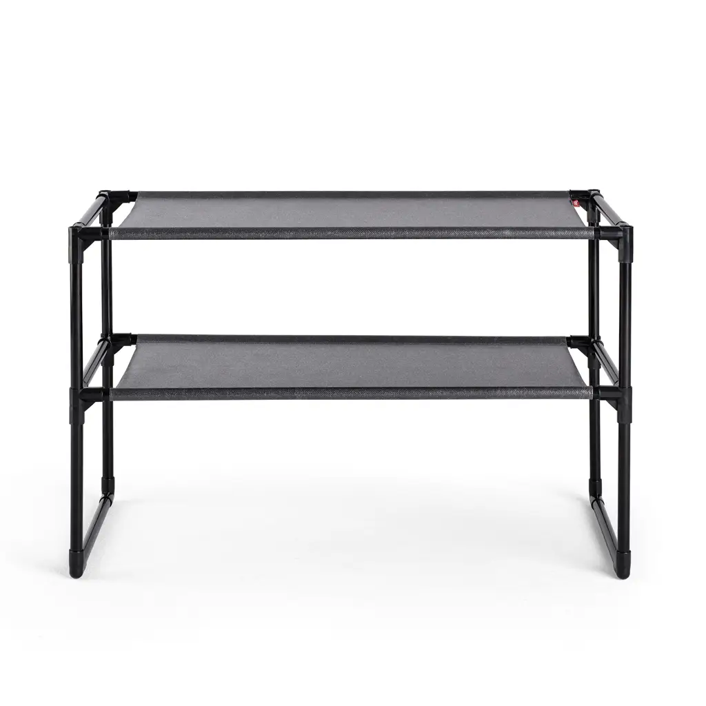 Dwupoziomowy stojak na obuwie Rayen to praktyczne i eleganckie rozwiązanie do przechowywania butów, które pomaga utrzymać porządek w przedpokoju, garderobie lub sypialni.