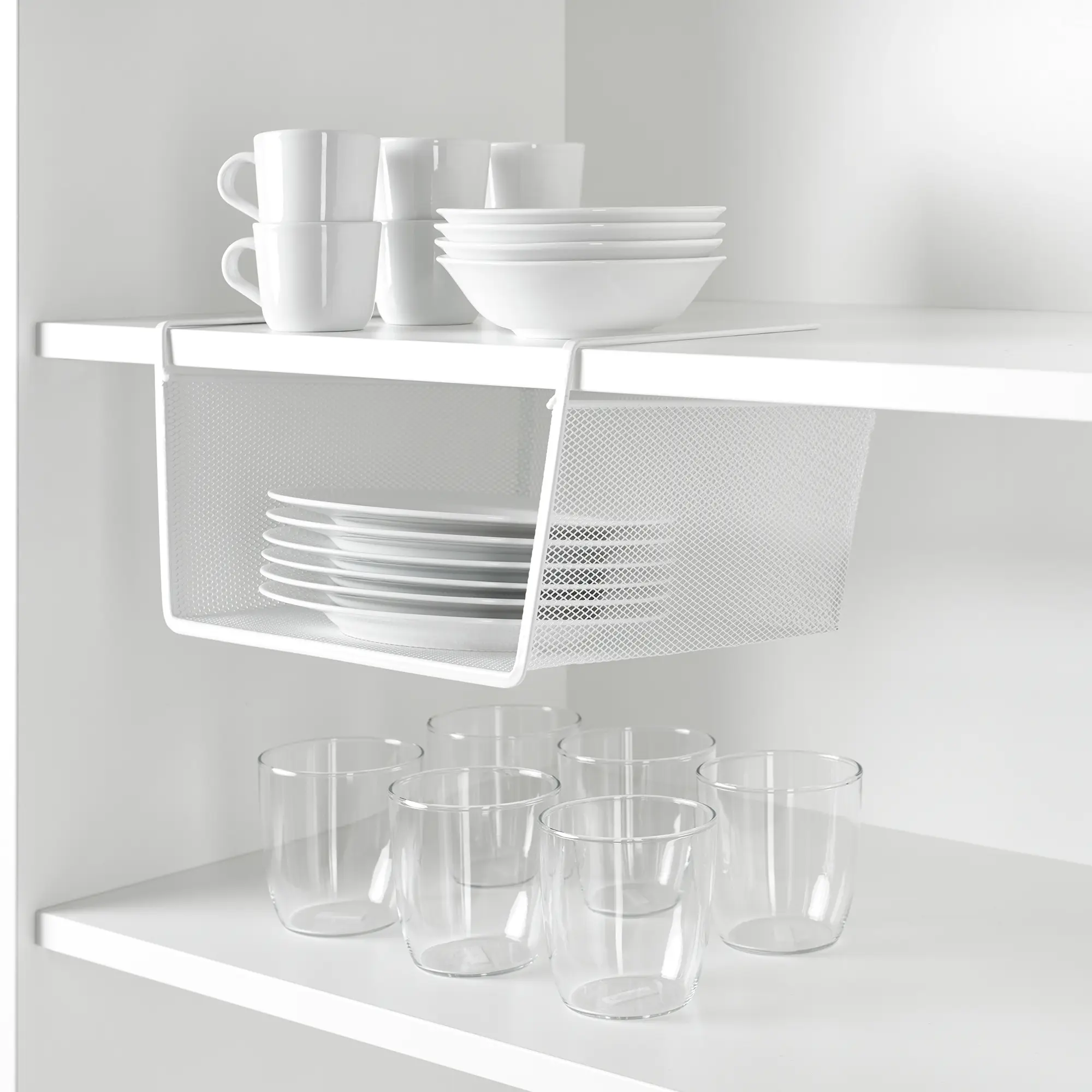 Kosz podwieszany pod półkę Rayen to praktyczne rozwiązanie do przechowywania różnych przedmiotów w kuchni, łazience, biurze czy garderobie. Dzięki temu koszowi, możesz efektywnie wykorzystać dostępną przestrzeń pod półkami, organizując swoje rzeczy w porządku i z łatwością je odnajdując.