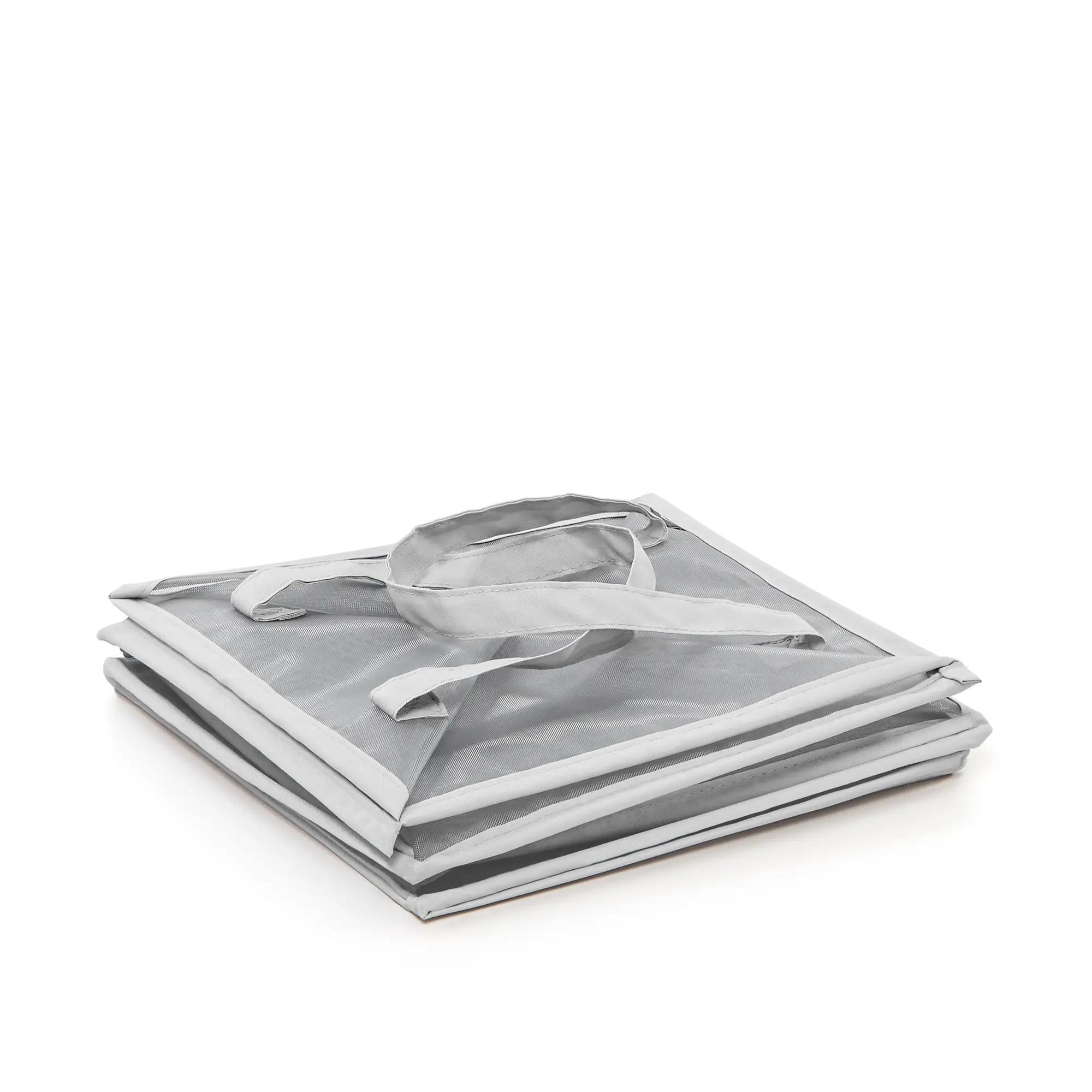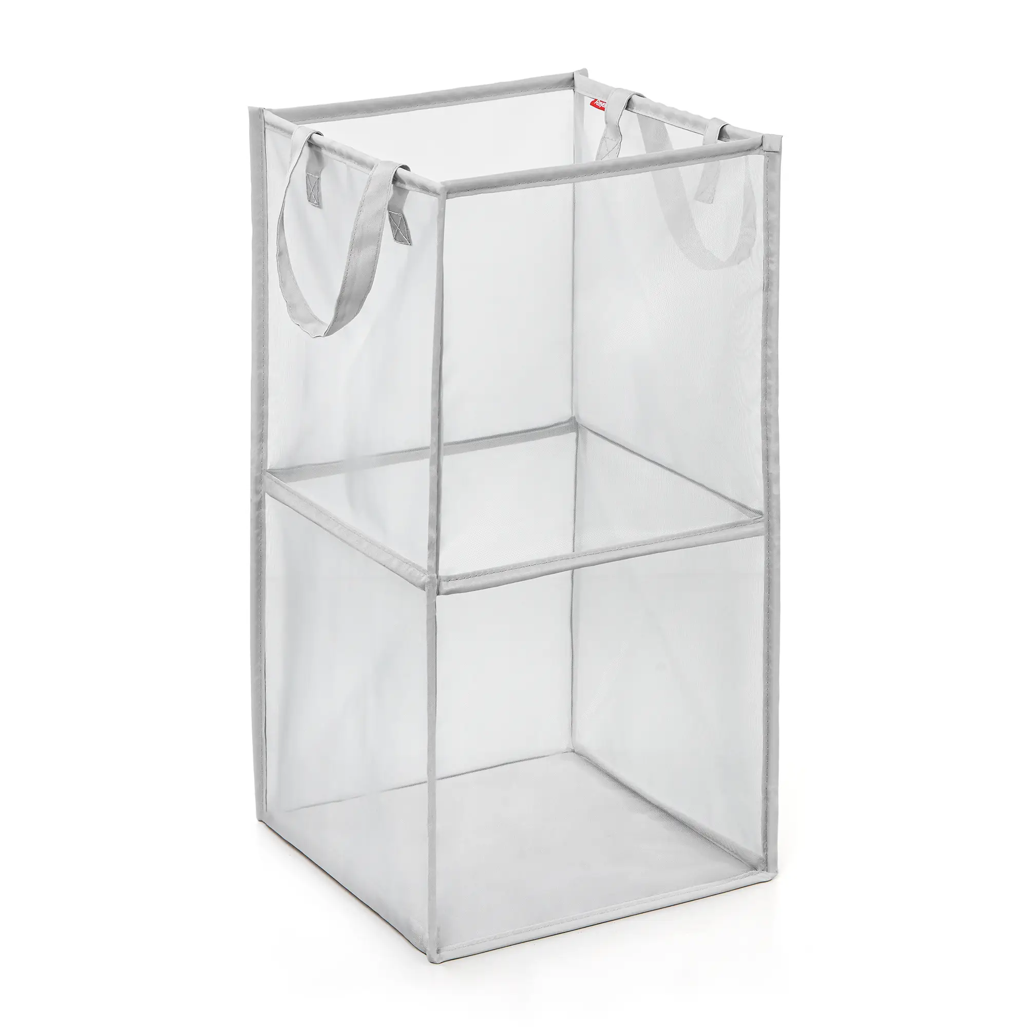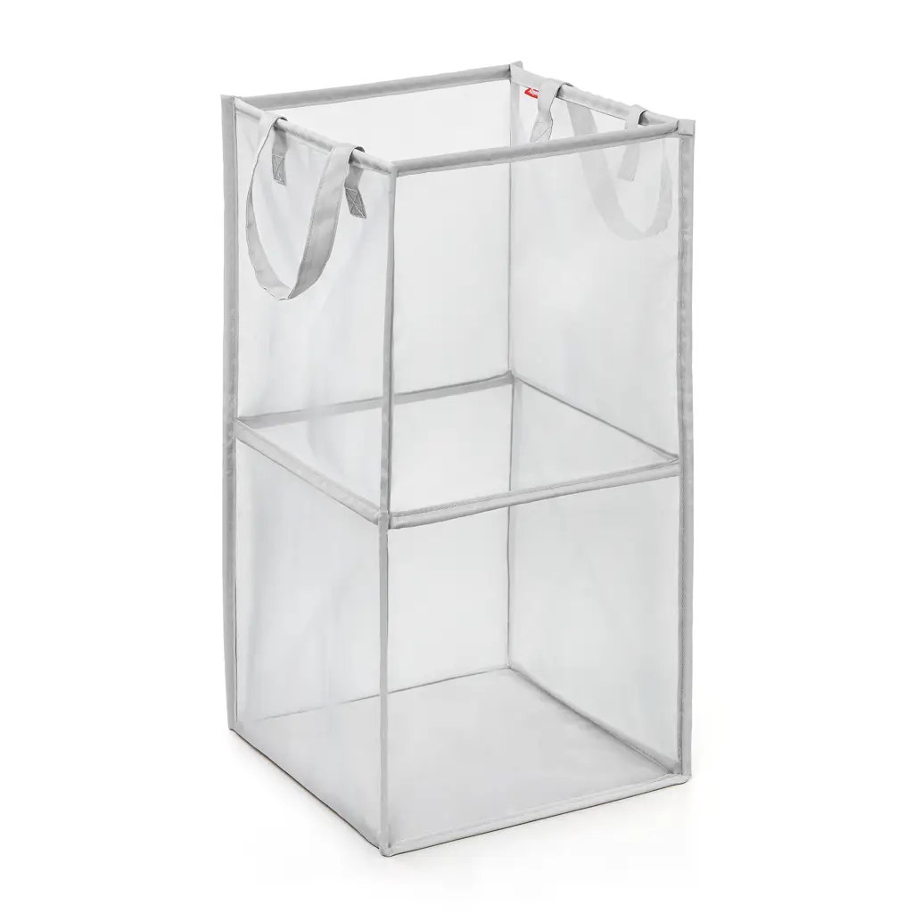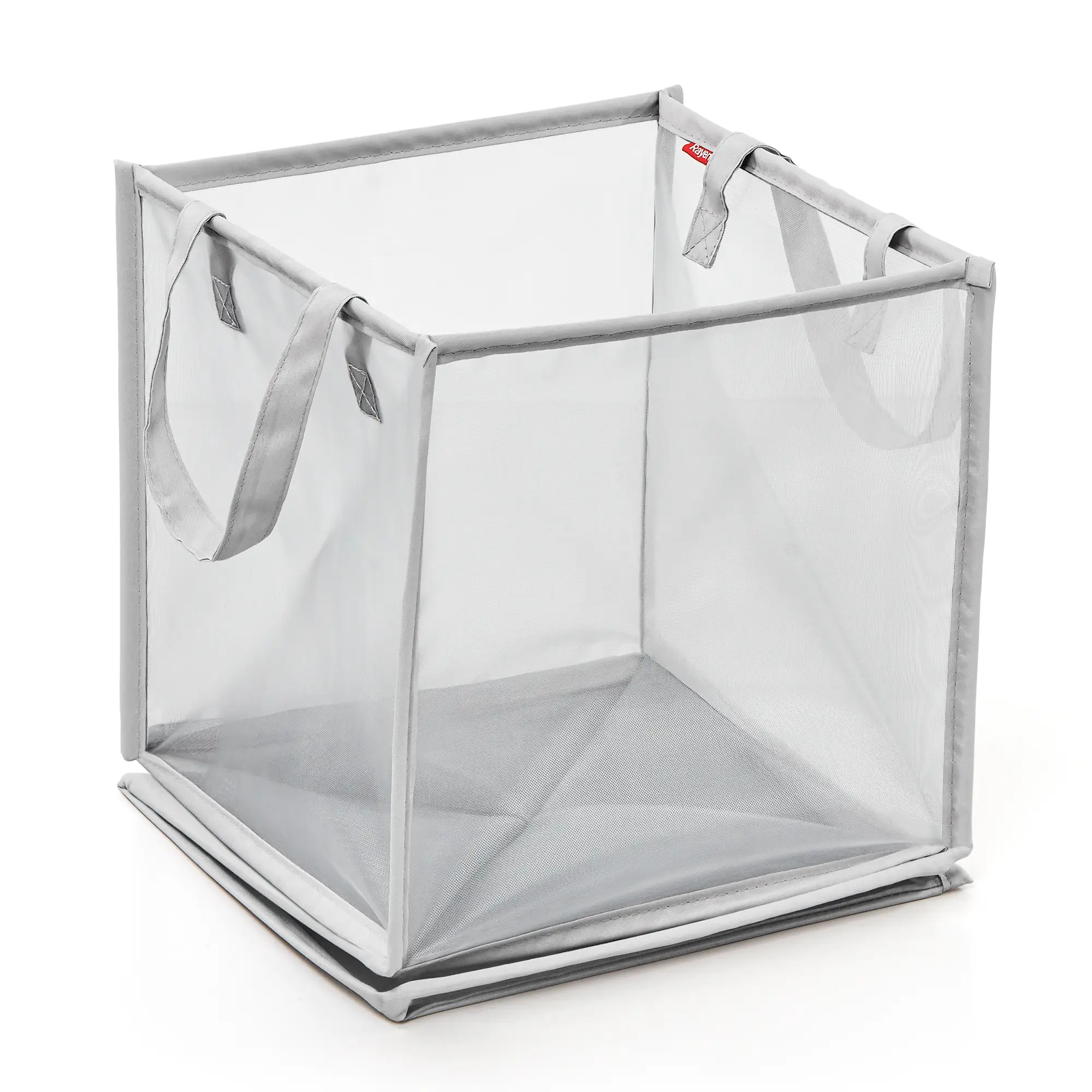Kosz może być łatwo złożony, oferując opcję redukcji przestrzeni do jednego poziomu, zawsze dostosowaną do Twoich bieżących potrzeb. Jego wzmocniona konstrukcja, w połączeniu z siateczkowym korpusem, nie tylko gwarantuje trwałość, ale także pozwala łatwo zobaczyć zawartość, utrzymując jednocześnie cyrkulację powietrza i świeżość magazynowanych przedmiotów.