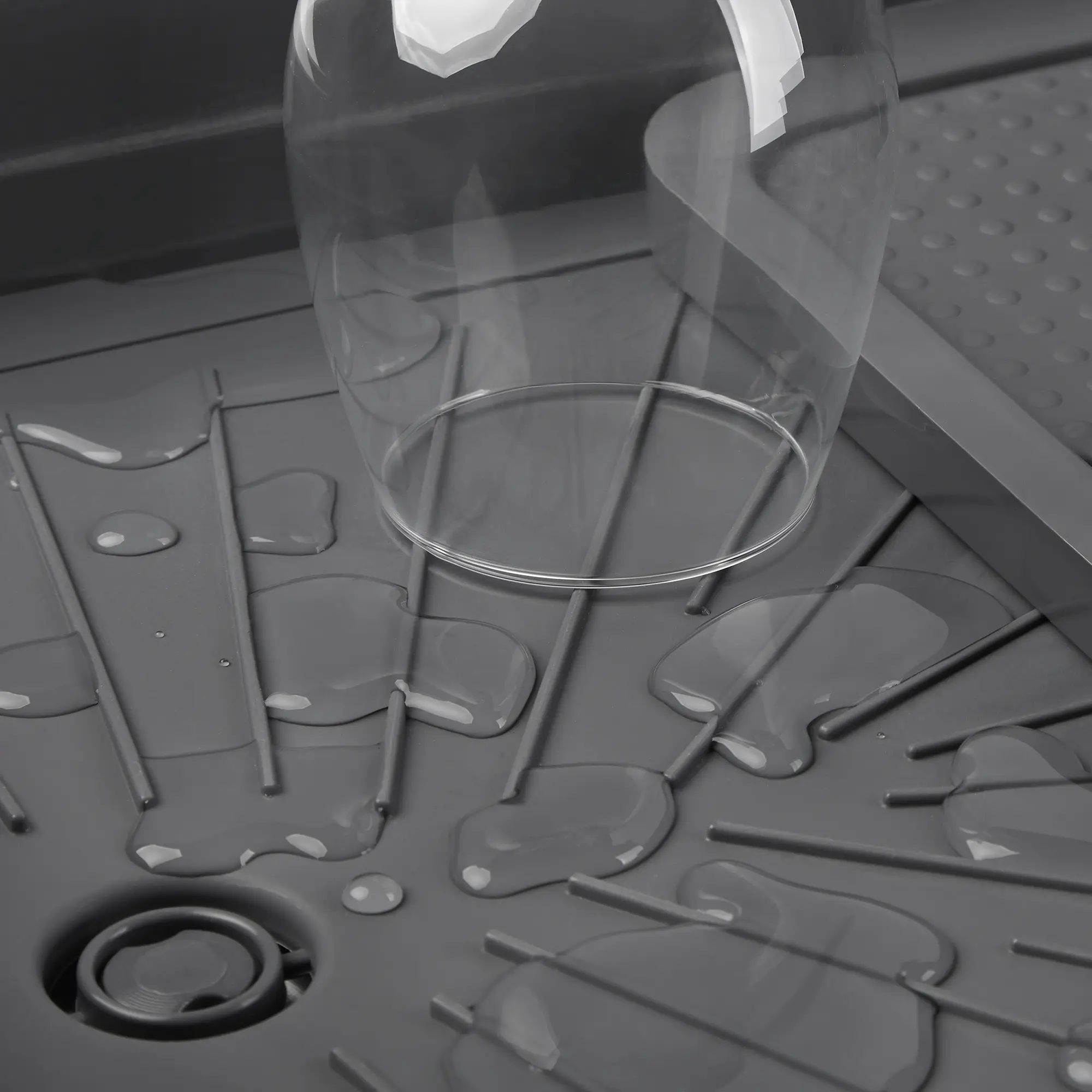 Dobrze dobrane dodatki, jak miejsce na sztućce czy inteligentny system odprowadzania wody sprawiają, że każda kropla trafi prosto do zlewu. Jej regulowana konstrukcja pozwala na dostosowanie rozmiaru w zależności od ilości naczyń, a po złożeniu staje się niezwykle kompaktowa, dzięki czemu doskonale wkomponuje się w każdą kuchnię.