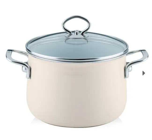 Emaliowane naczynia kuchenne o prześlicznych kolorach i nowoczesnych kształtach to specjalność marki Riess. Charakteryzują się one dużą wytrzymałością i niezawodność; wprowadzają profesjonalną jakość do każdej kuchni. Garnek wysoki z pokrywą Avorio 4 L kość słoniowa to jeden z produktów firmy. Z jego pomocą przyrządzimy potrawy większej ilości, np. zupy.