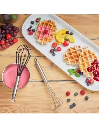 Trzepaczka z silikonem o długości 22 cm marki Roesle to innowacyjne narzędzie kuchenne, które łączy w sobie funkcjonalność tradycyjnej trzepaczki z zaletami elastycznego i trwałego silikonu. Charakteryzuje się solidnym wykonaniem, ergonomicznym designem i zdolnością do pracy na różnych powierzchniach.