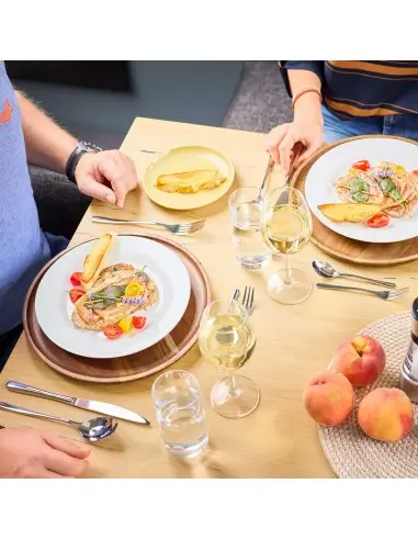 - 30 sztuk, dla 6 osób: 6 noży stołowych, 6 widelców stołowych, 6 łyżek stołowych, 6 widelczyków do ciasta, 6 łyżeczek do kawy