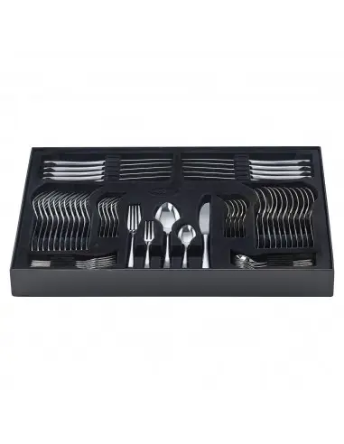 - 60 sztuk, dla 12 osób: 12 noży stołowych, 12 widelców stołowych, 12 łyżek stołowych, 12 widelczyków do ciasta, 12 łyżeczek do kawy