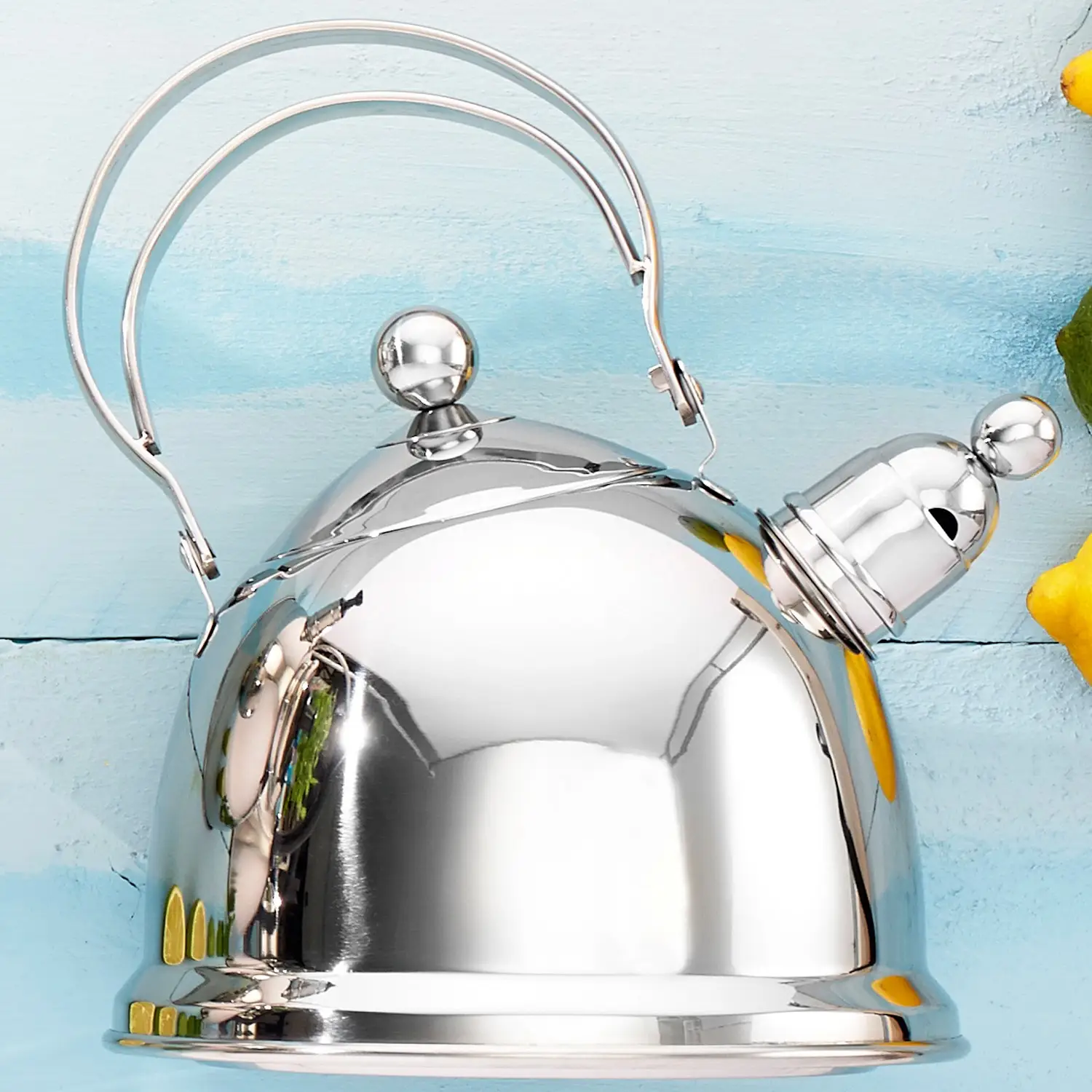 Ten duży czajnik z pewnością sprawdzi się w kuchni dużej rodziny oraz podczas wielu przyjęć i spotkań towarzyskich. Produkt wyposażony został w przymocowany na stałe gwizdek, który głośno alarmuje kiedy woda się zagotuje.
